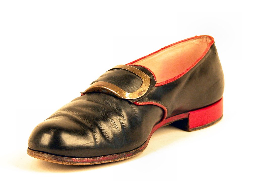 Zwarte rechterschoen met rode hak en rode biezen en zilveren gesp, van kardinaal Bernardus Johannes Alfrink