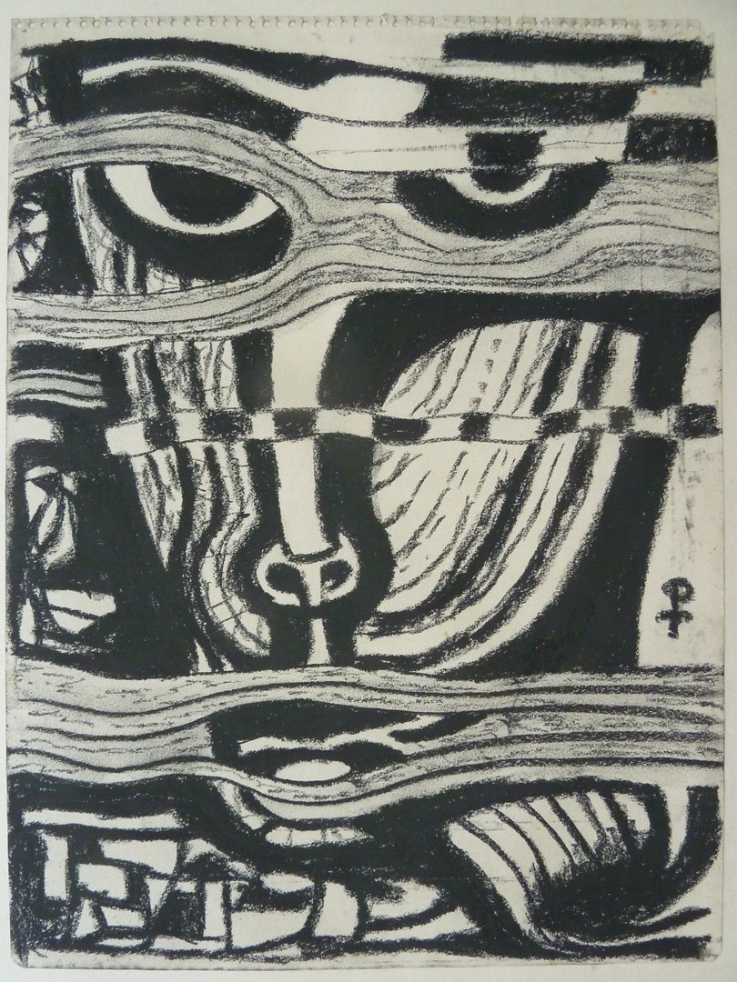 Het water rijst mij tot de lippen, compositie met kop waardoor horizontale banden getekend zijn