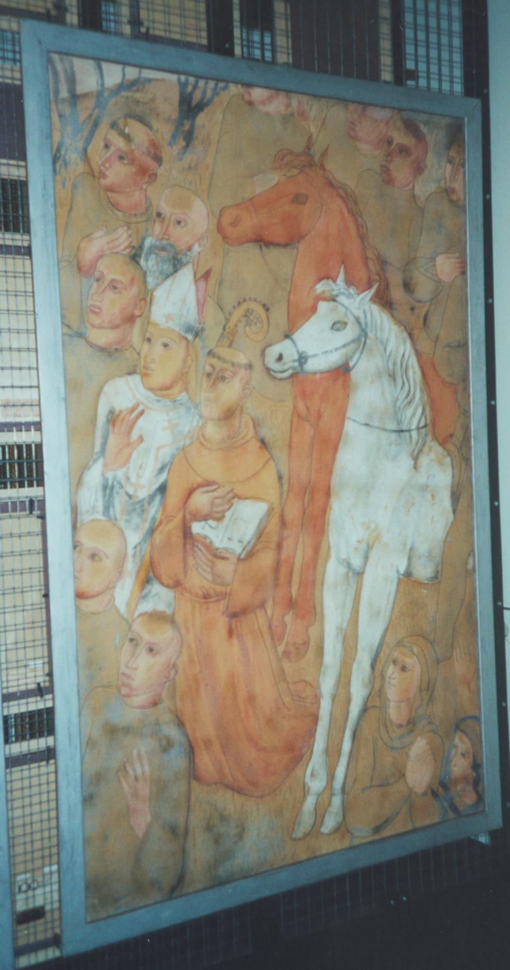 Ontwerp wandschildering, knielende geestelijken en twee ruiters (St. Jozefkweekschool, Zeist)