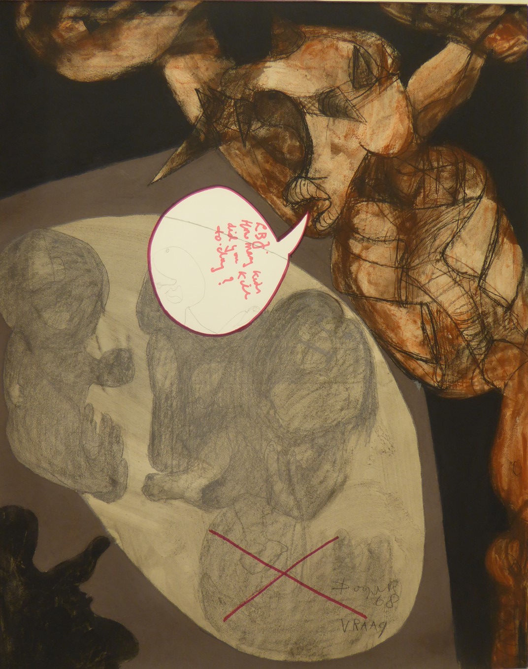 Gekruisigde Christus met "L.B.J., How many kids did you kill today?"