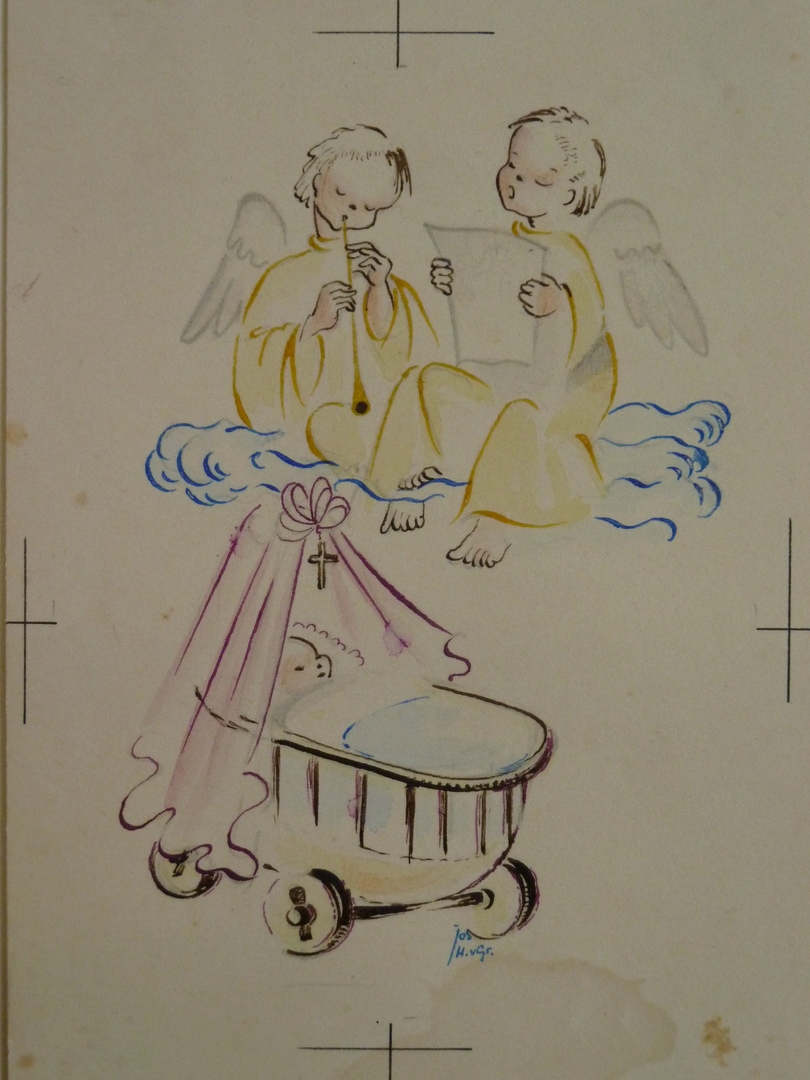 Ontwerp geboortekaartje met engel en wieg