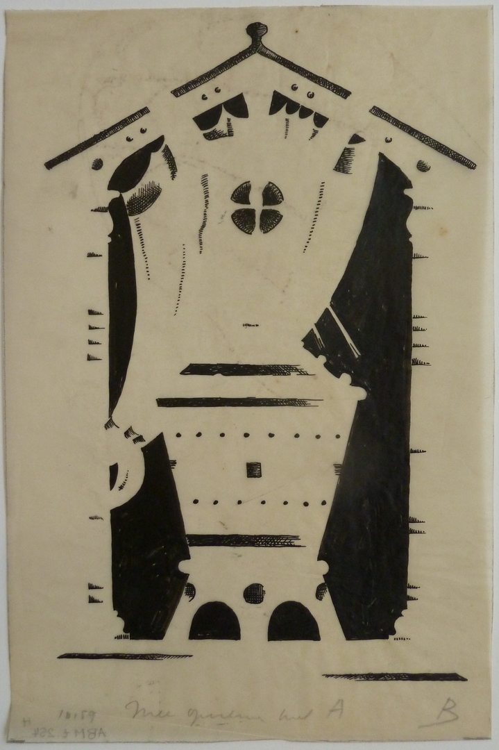 Ontwerp doopvont en H. Geest, op achtergrond gordijn, tweede drukgang