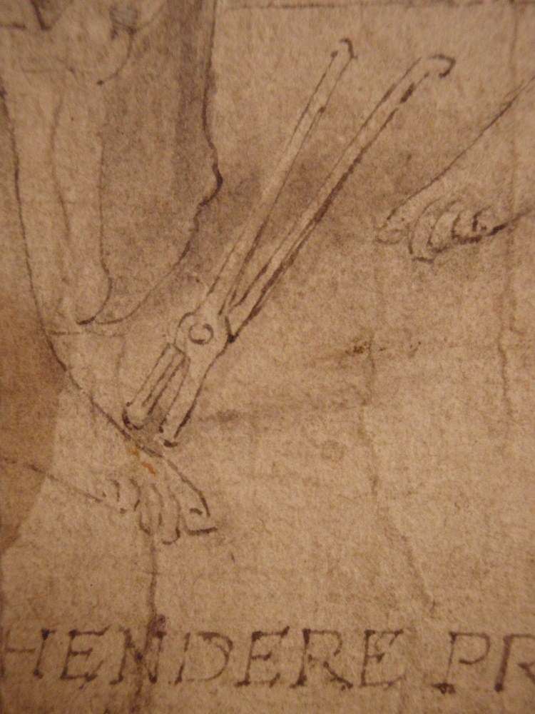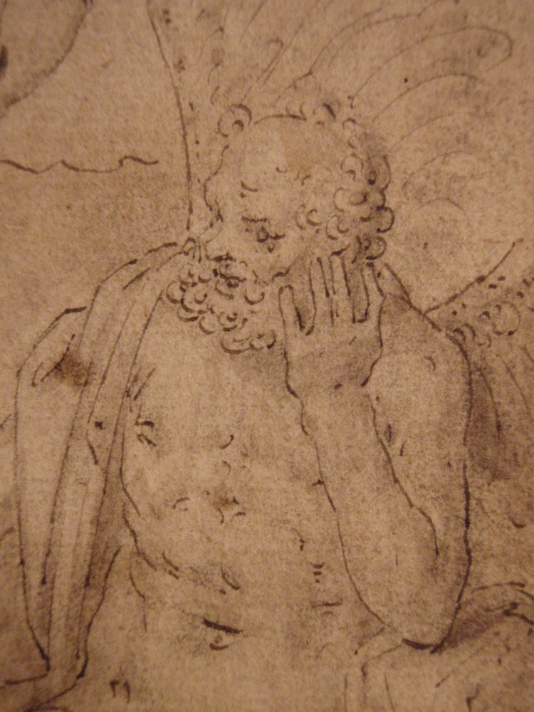 Ontwerp voor embleem nr. 1 van Hadrianus Junius’ Emblemata (1565), met de god Vulcanus, twee beelden van menselijke figuren en de god Momus