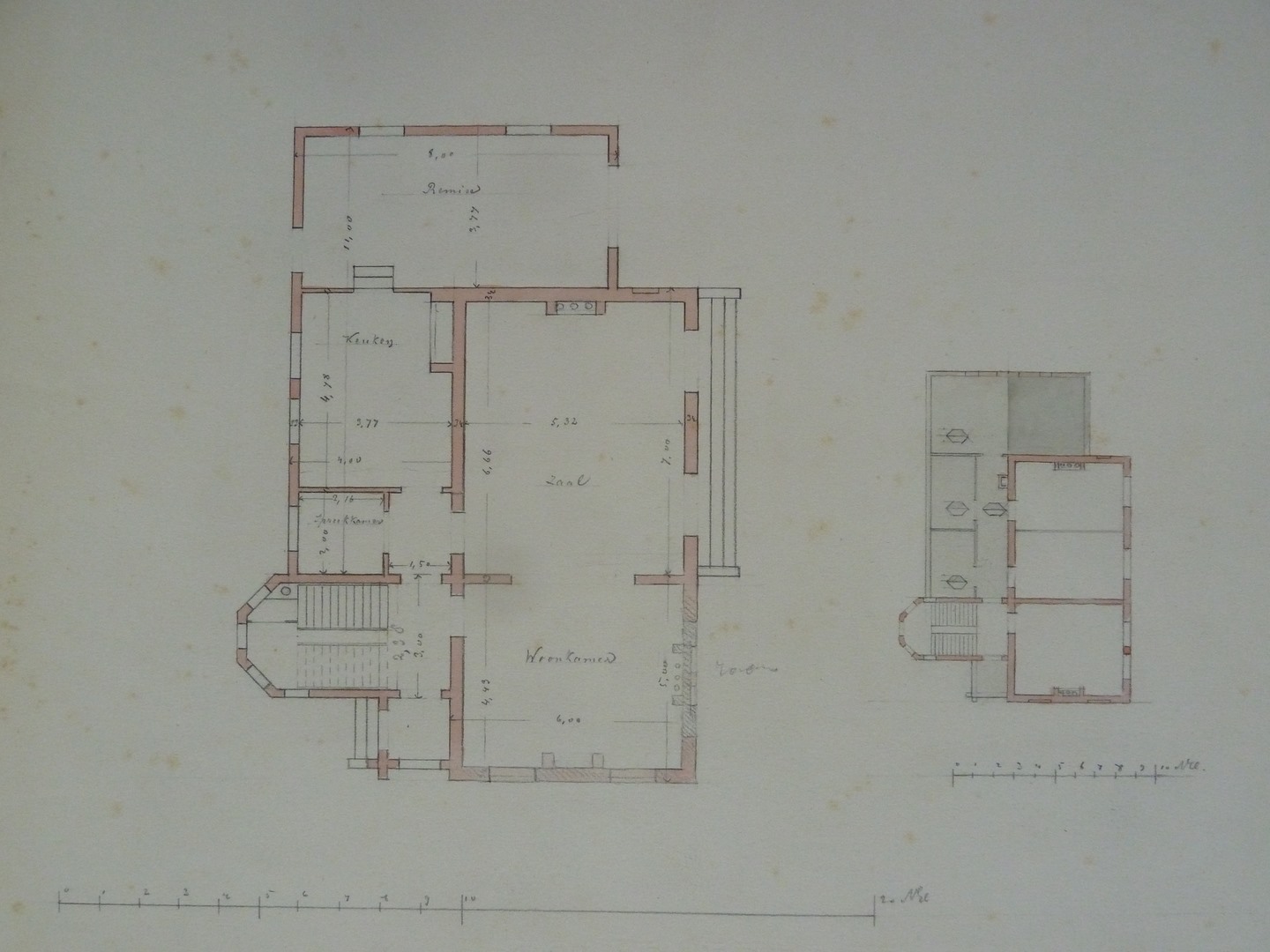 Ontwerp voor pastorie(?), plattegrond van begane grond en eerste verdieping