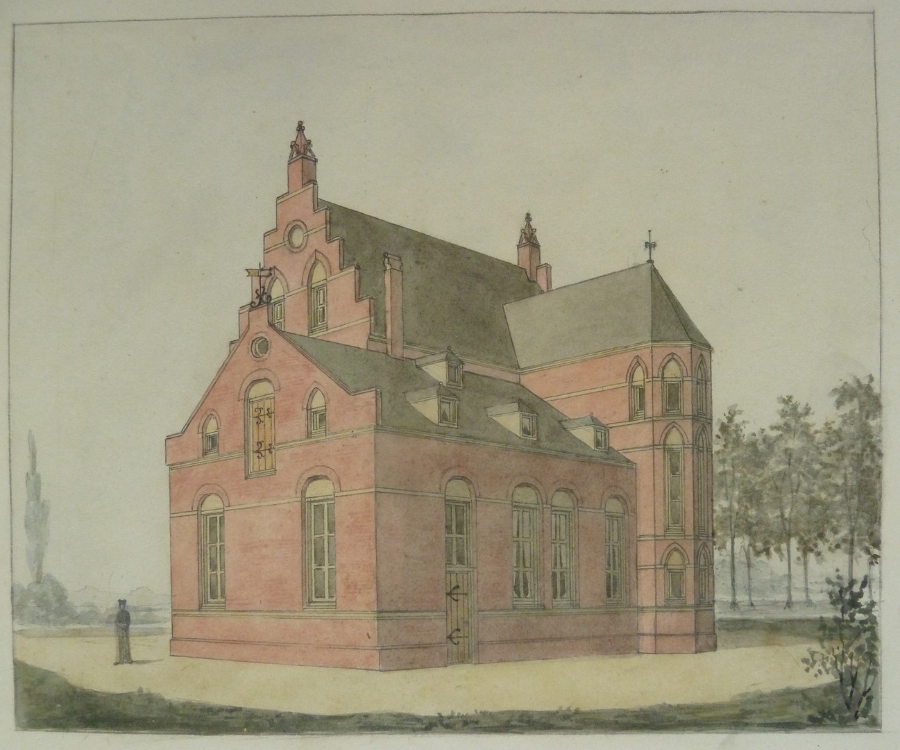 Ontwerp voor pastorie(?), aanzicht van zij- en voorkant