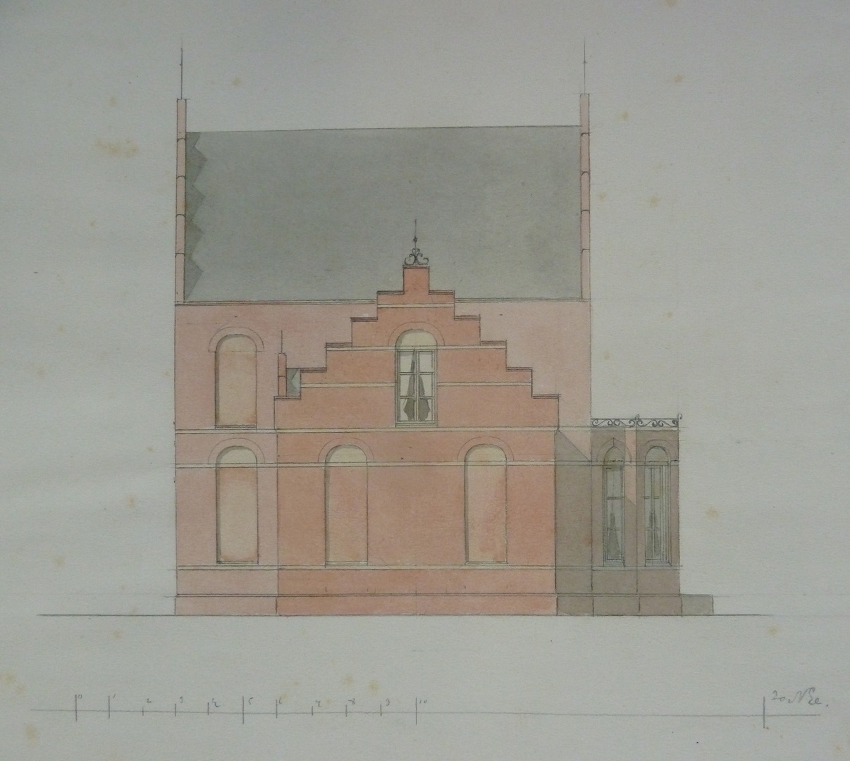 Ontwerp voor pastorie(?), zijaanzicht