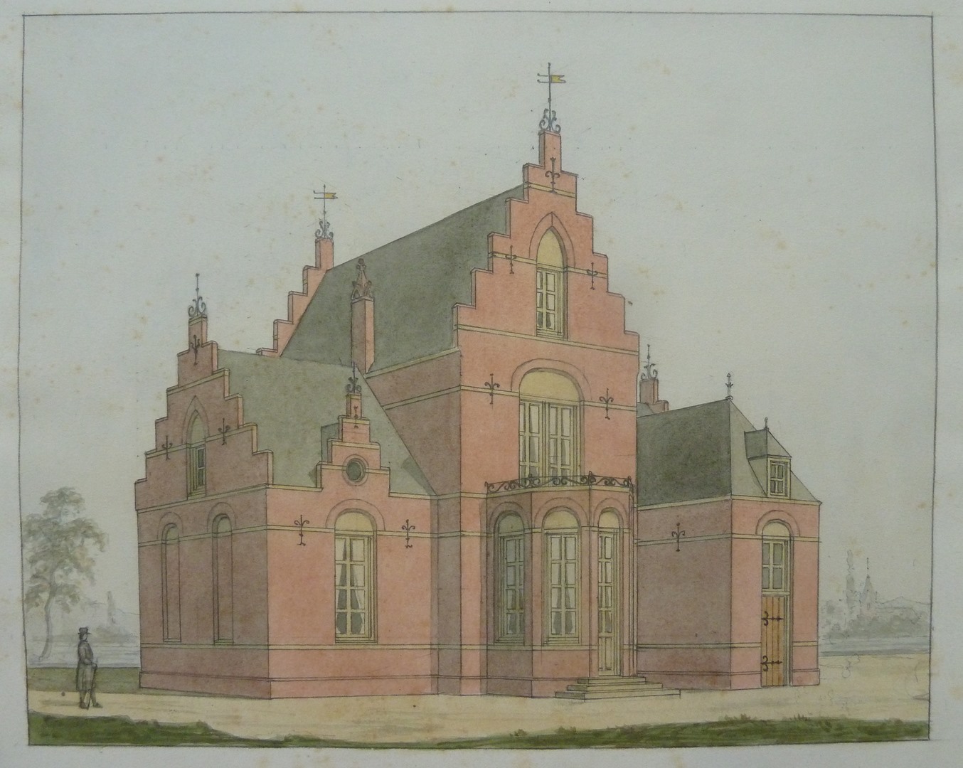 Ontwerp voor pastorie(?), aanzicht van zij- en achterzijde