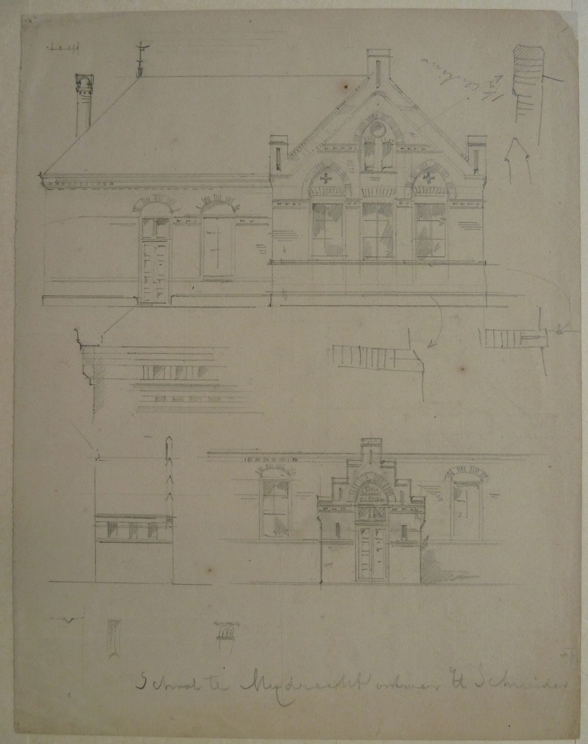 Ontwerp voor school te Mijdrecht, twee aanzichten