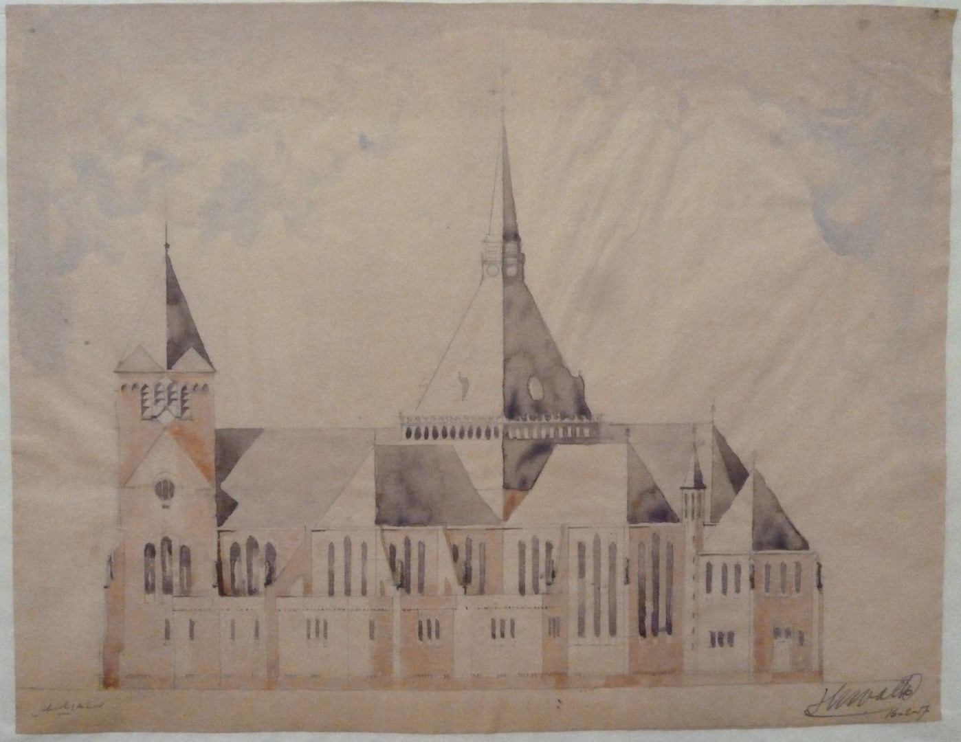 Ontwerp voor kerk, zijaanzicht, schaal 1 op 200