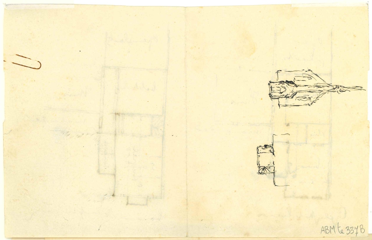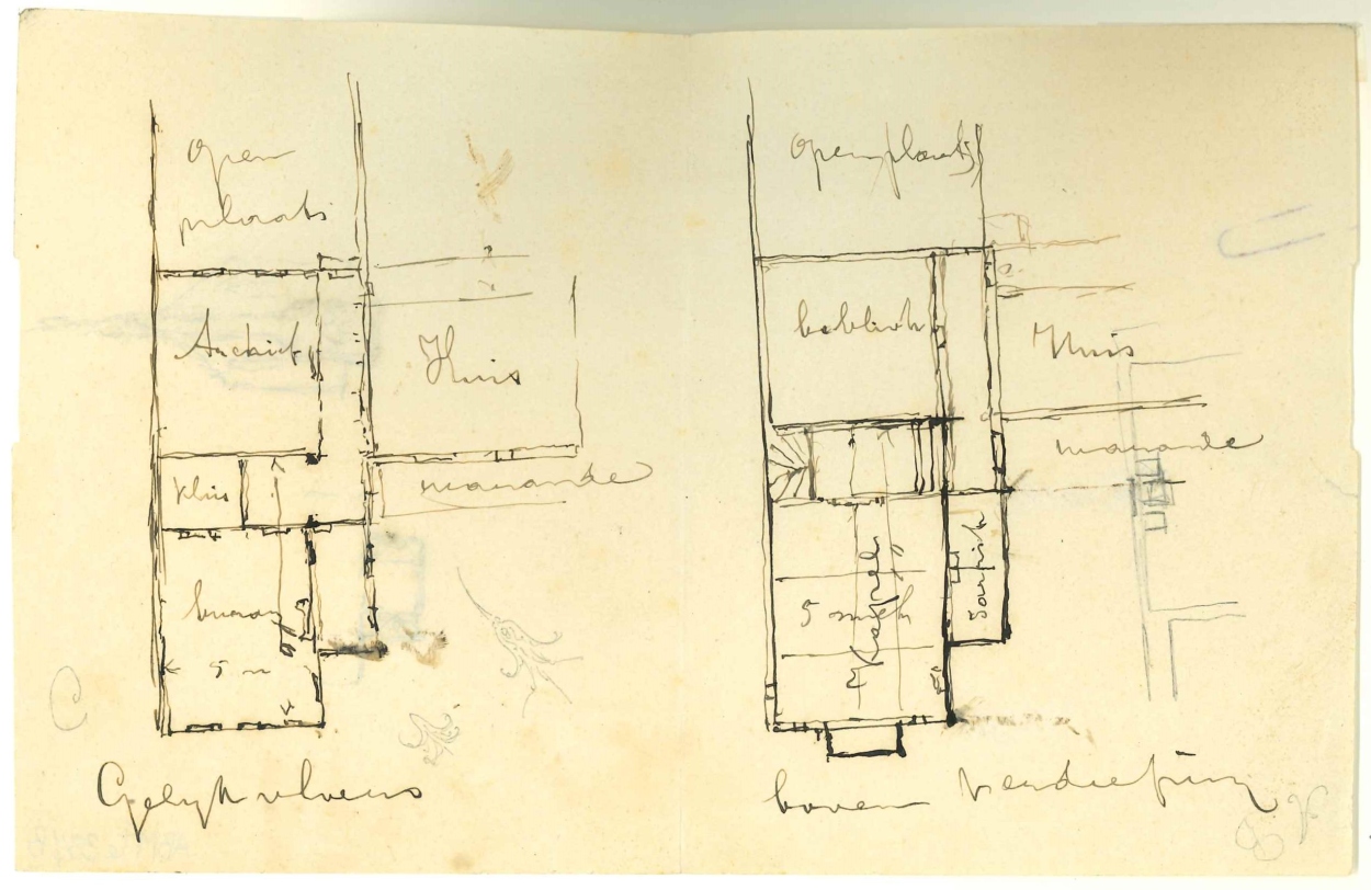 Schets van huiskapel Maliebaan 40, plattegrond gelijkvloers en bovenverdieping