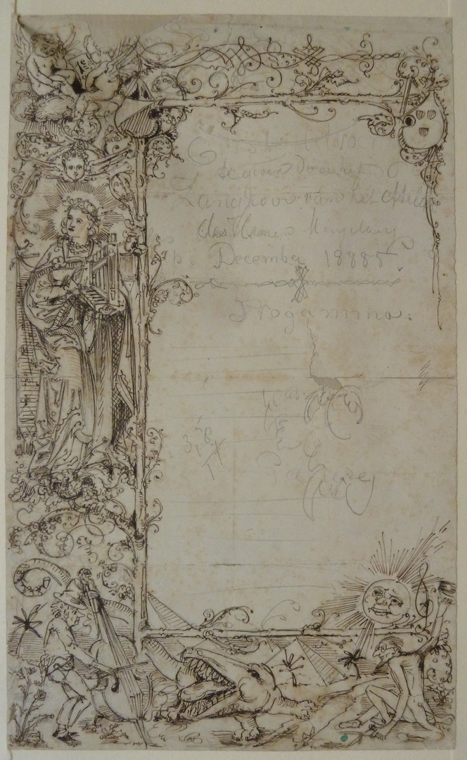 Ontwerptekening voor programma van "Uitvoering te geven door het zangkoor ... Mengelberg ... 1885"