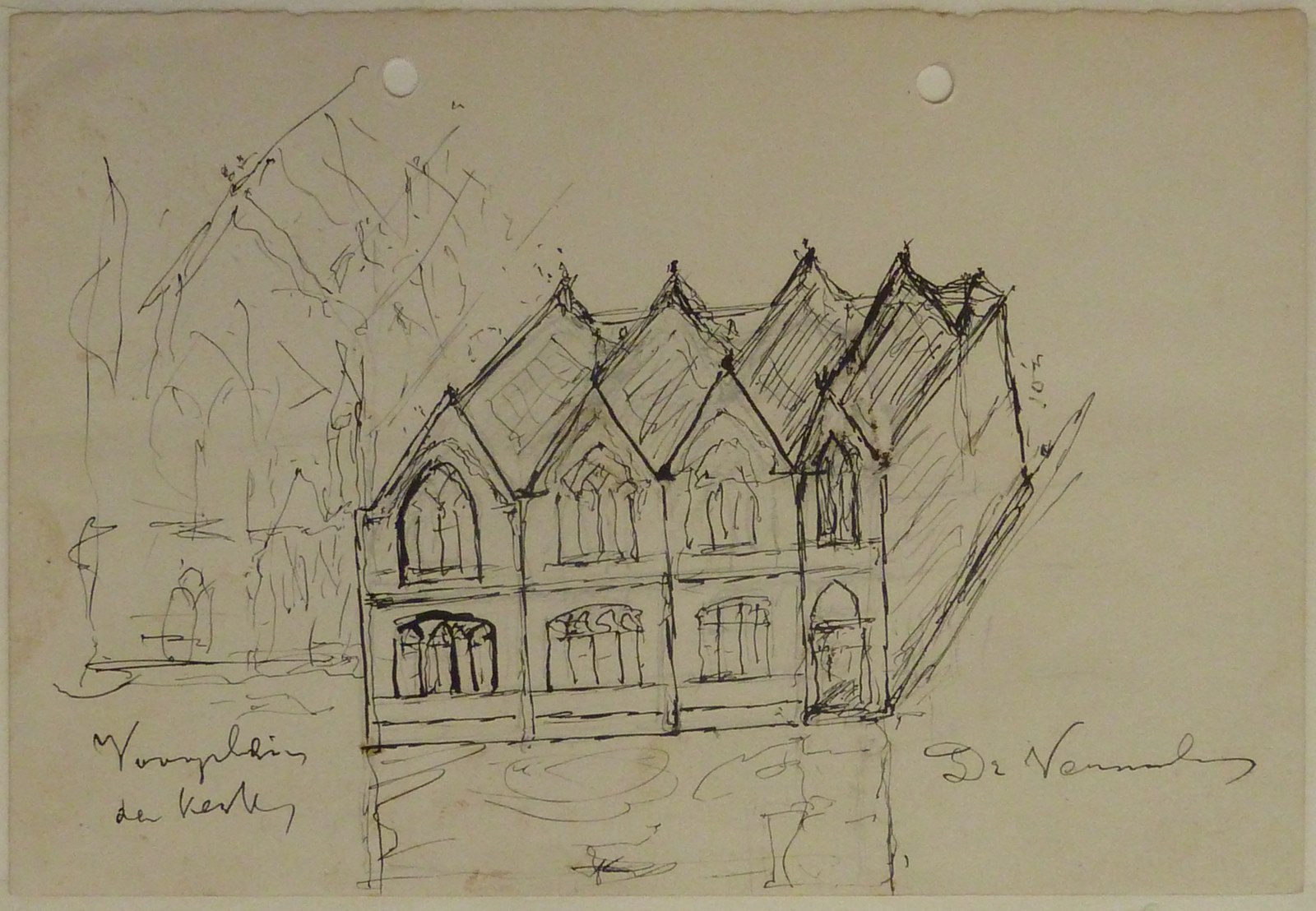 Schets voor aanbouw van een nieuwe vleugel aan het Catharijneconvent aan de Lange Nieuwstraat