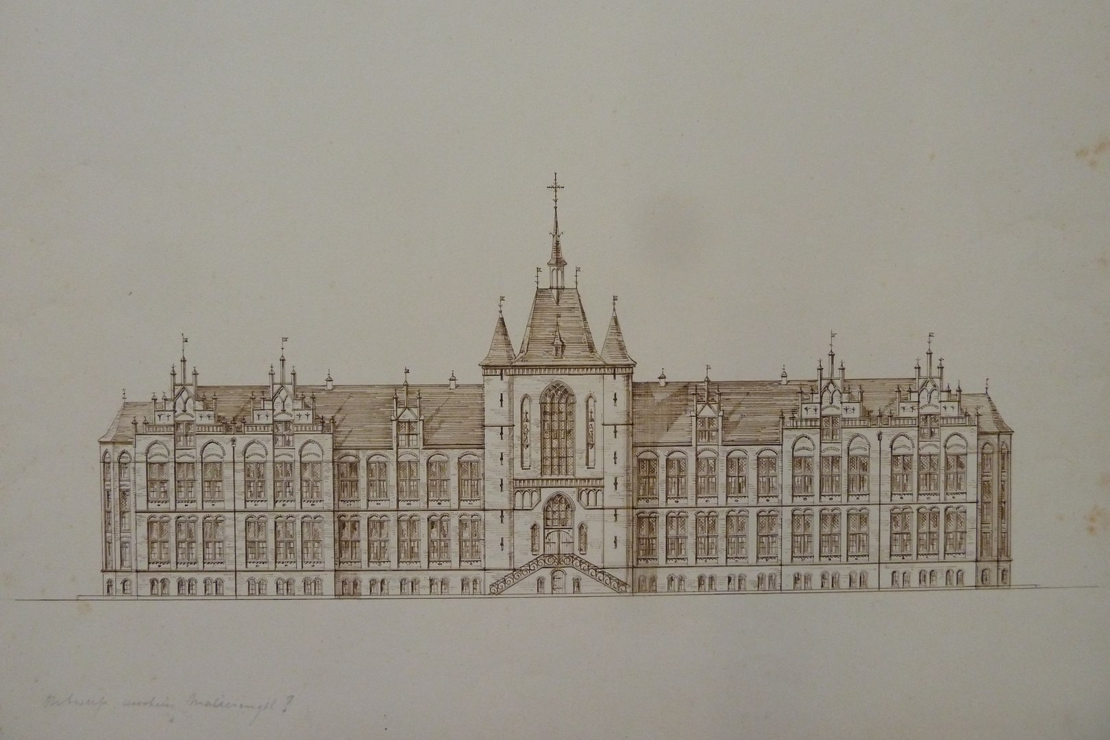 Studie voor aanzicht voorgevel van het r.k. wees- en oudeliedengesticht sint Hiëronymus aan de Maliesingel te Utrecht