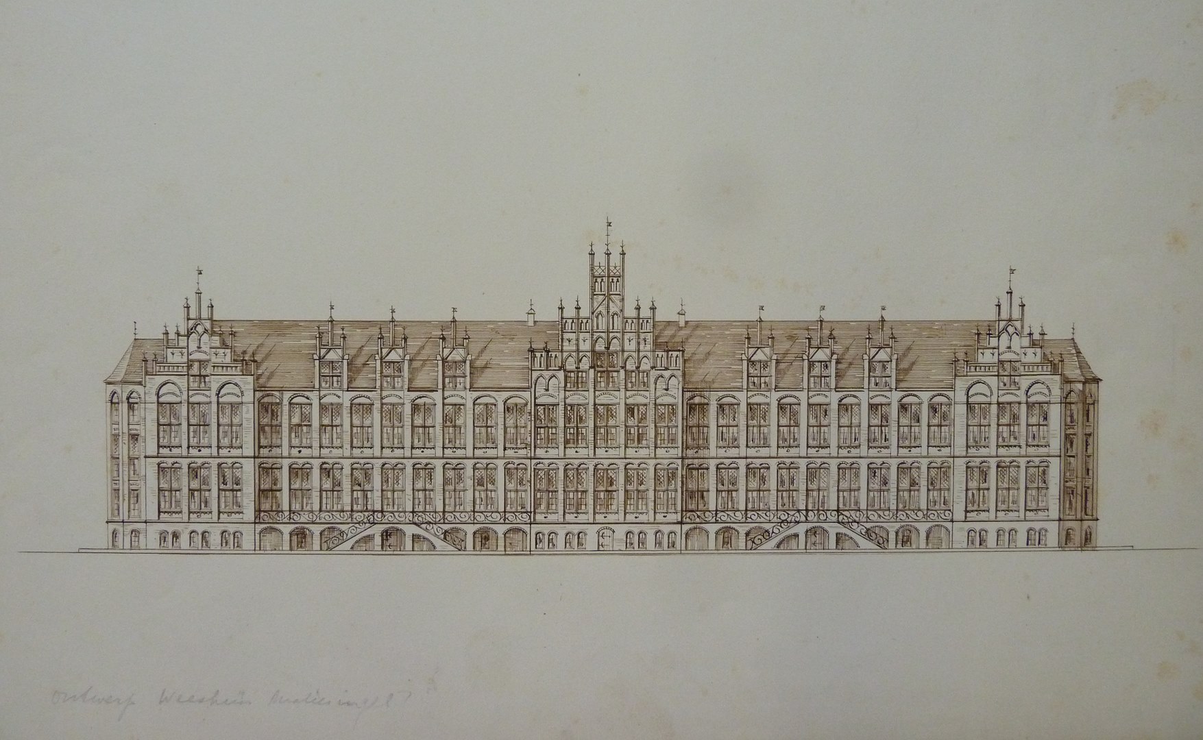 Studie voor aanzicht achtergevel van het r.k. wees- en oudeliedengesticht sint Hiëronymus aan de Maliesingel te Utrecht