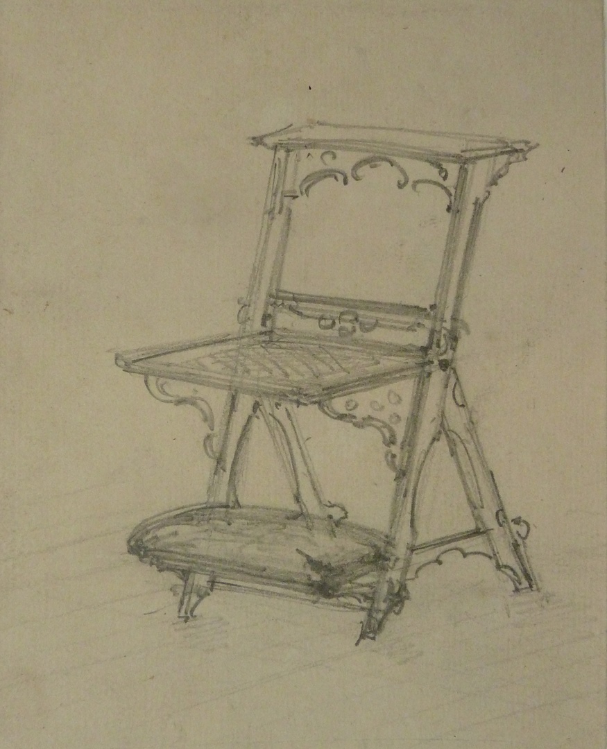 Schets van bidstoel, kz. deel van stoel
