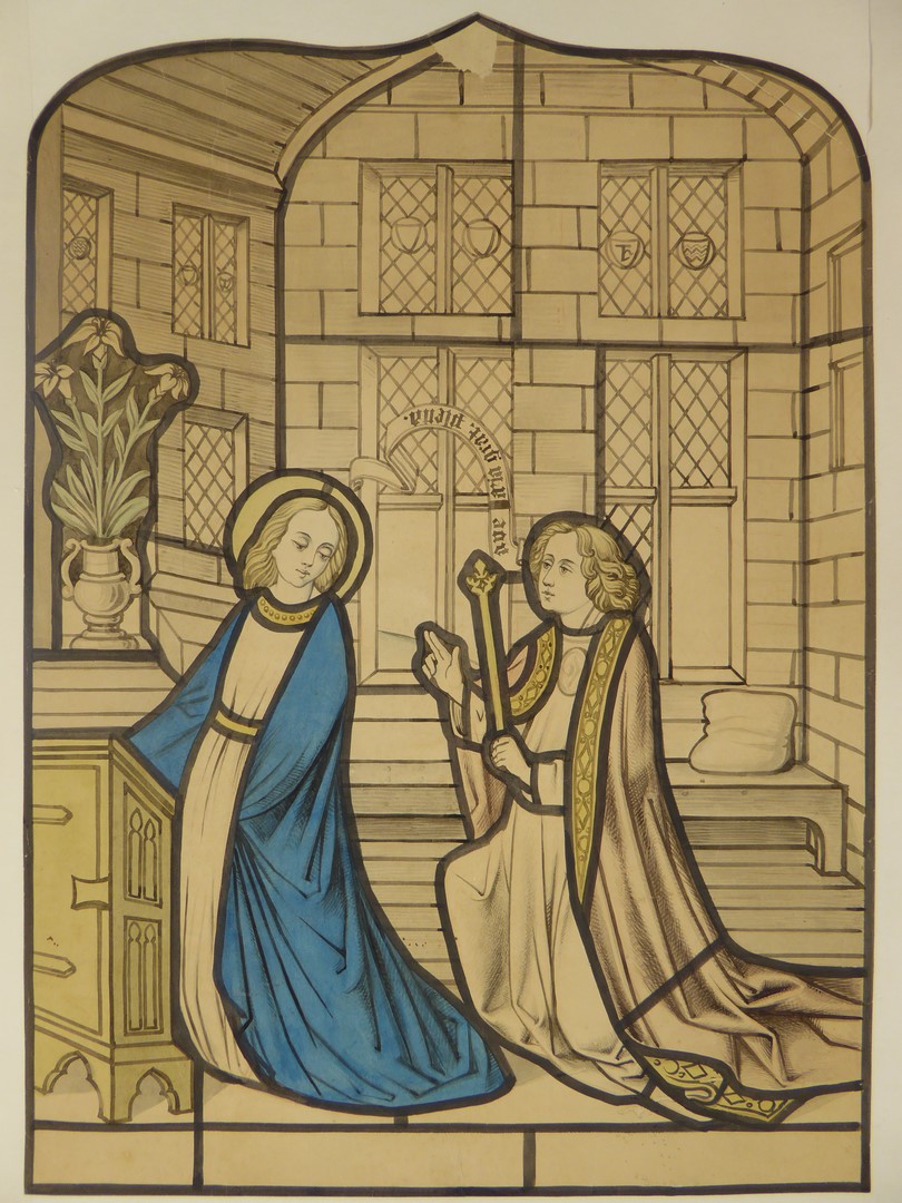 Ontwerp(?) glasraam met annunciatie
