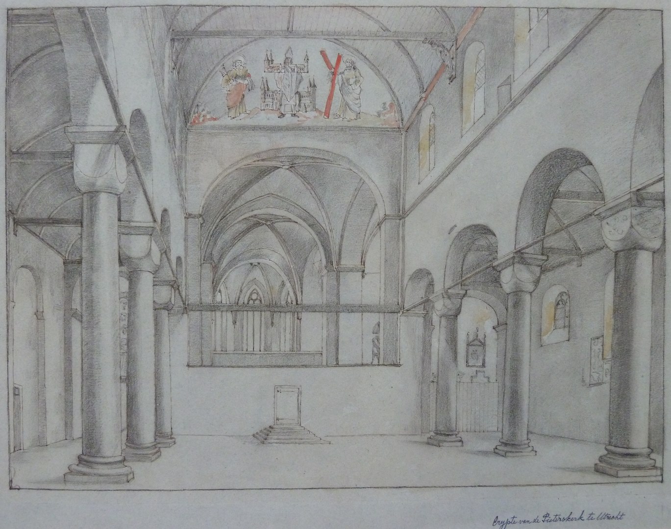 Crypte van de Pieterskerk te Utrecht (interieur naar het oosten)