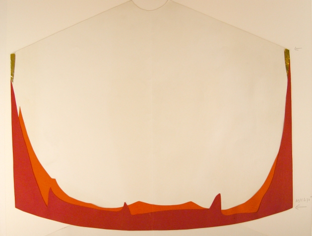 Ontwerp kazuifel in wit, rood, oranje en goud (voorzijde)