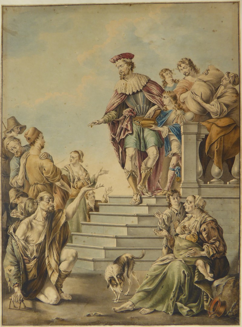 St. Bavo aalmoezen uitdelend