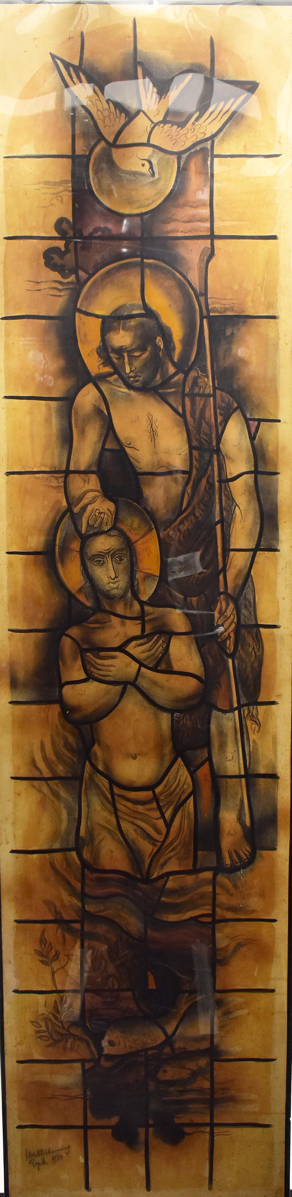 Ontwerp glas-in-loodraam, doop van Christus
