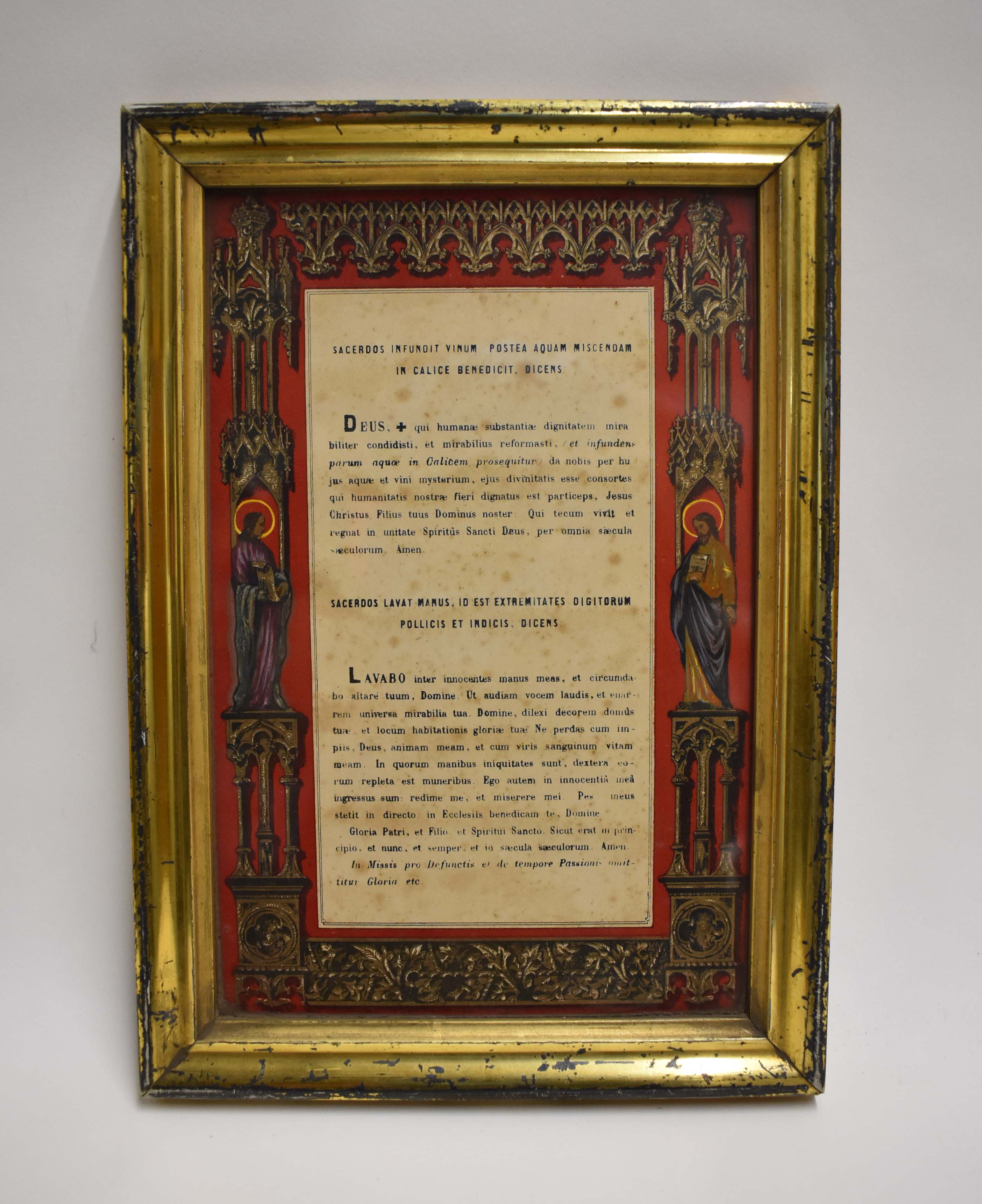 Canonbord met "Sacerdos infundit vinum postea aquam miscendam in calice benedicit, dicens: ..."