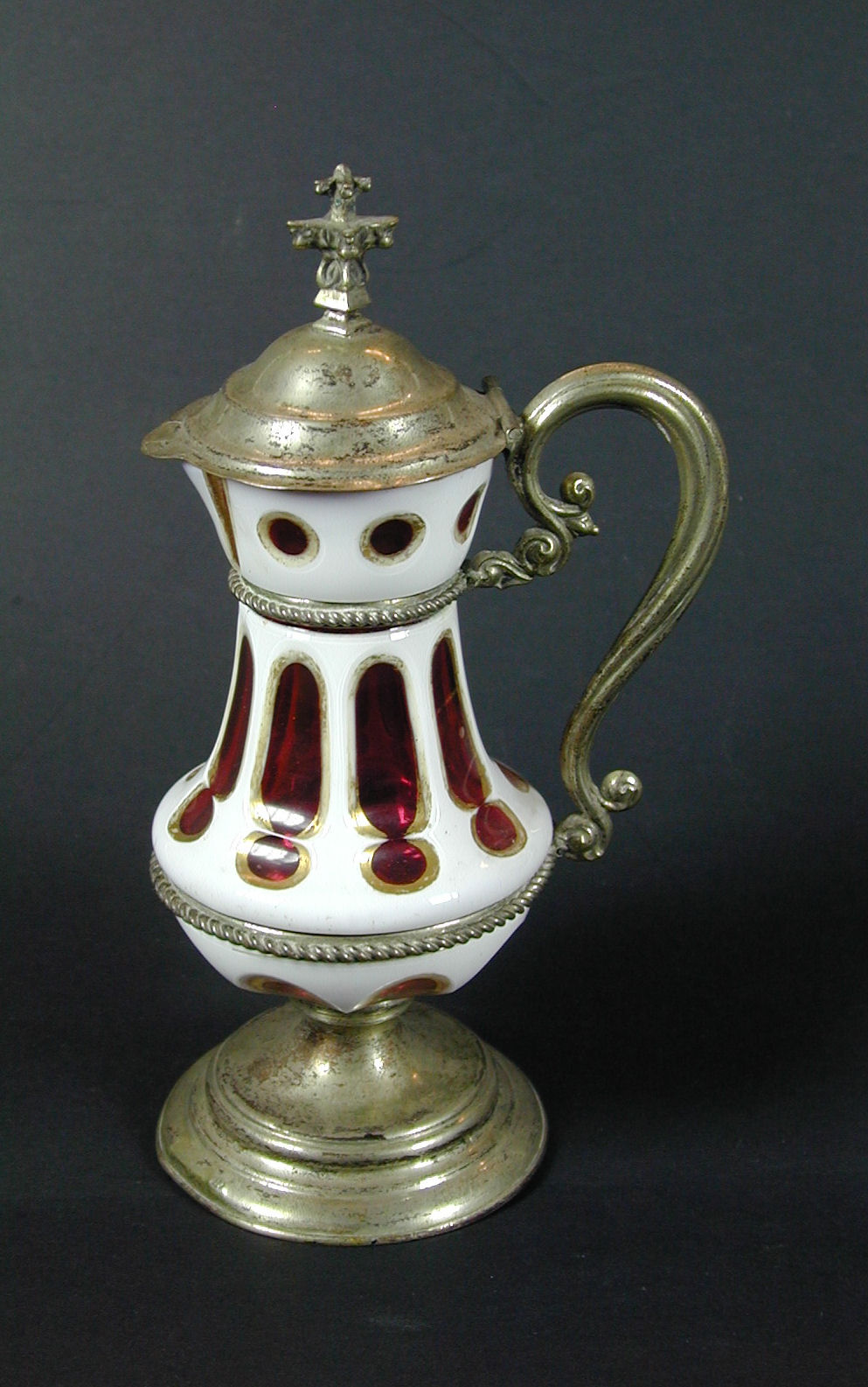 Ampul van wit met rood glas gevat in metaal, met de letter A (aqua) op de deksel