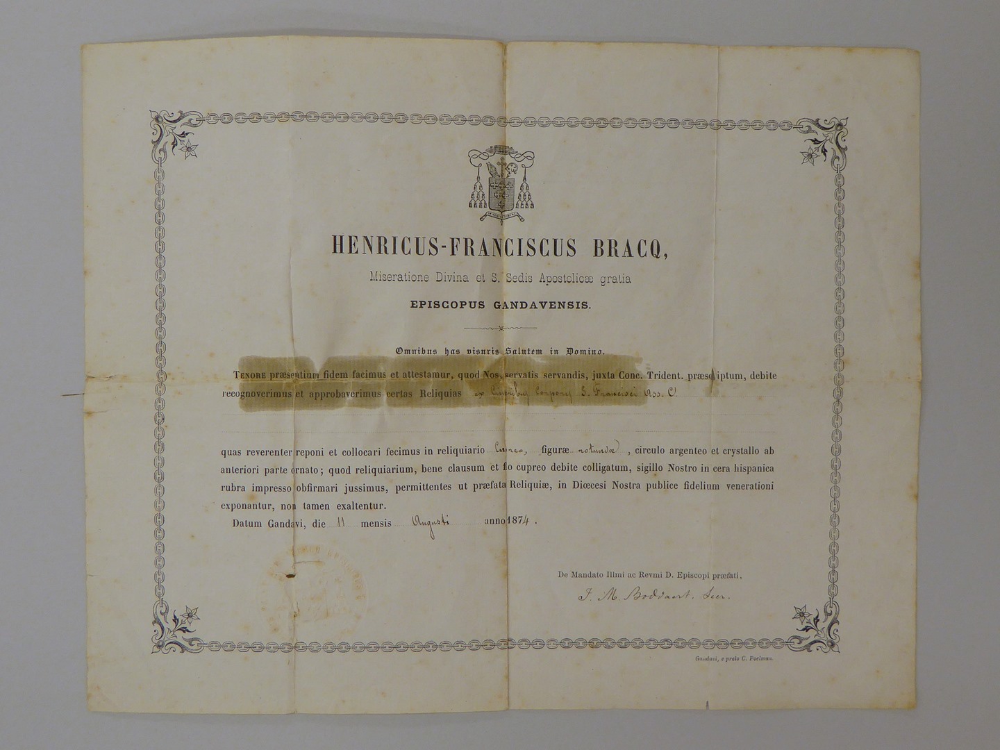Echtheidsverklaring bij ABM v189a met "Henricus-Franciscus Bracq ..."