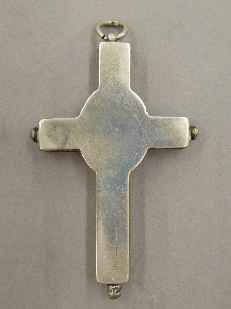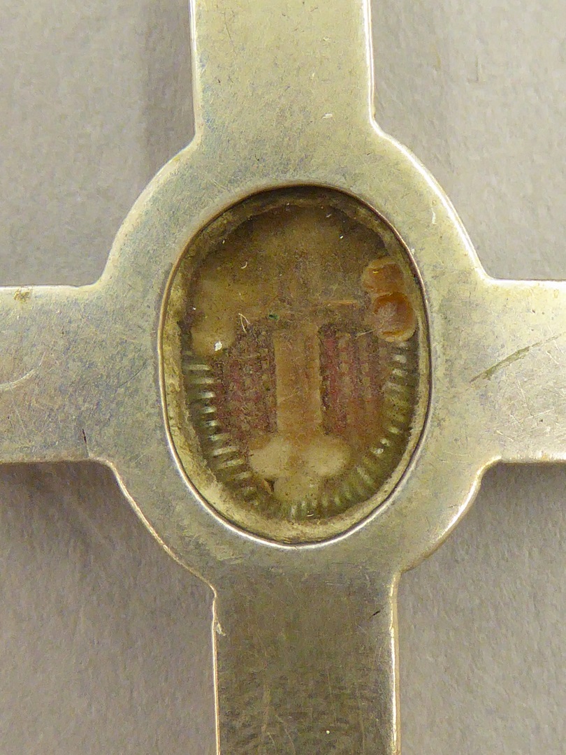 Reliekkruisje met in het midden een reliek in kruisvorm achter glas