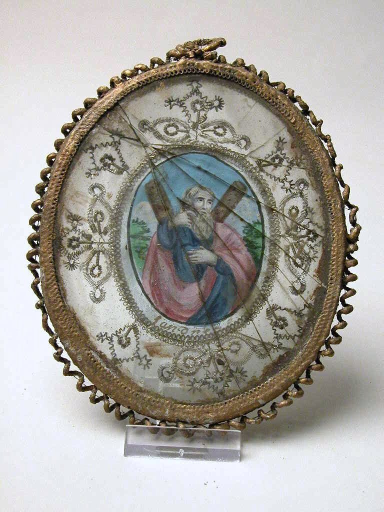 Heiligdom met St. Andreas met Andreaskruis, met op de achterzijde een reliekje
