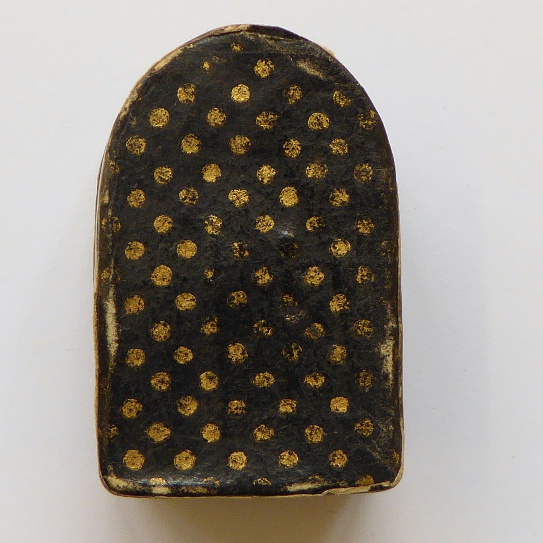 Reliekdoos met achter glas een pijpaarden beeldje van Maria met kind in papieren nis, met Agnus Dei en reliek van H. Cecilia