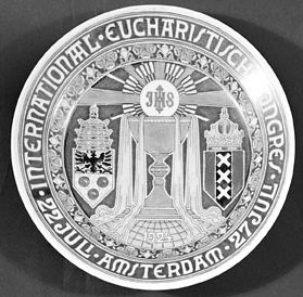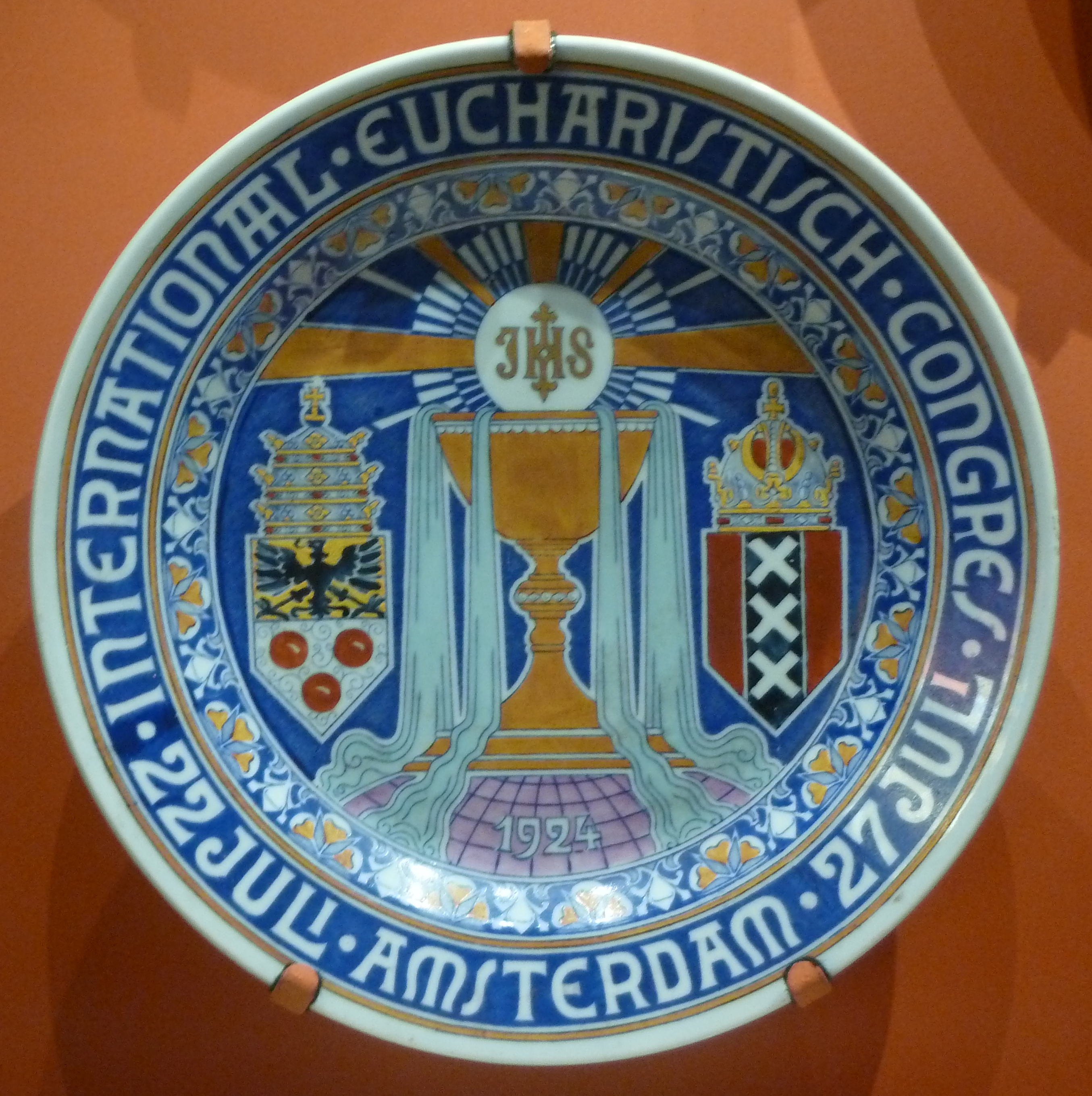 Bord van het Internationale Eucharistisch Congres (Amsterdam 1924) met kelk en hostie