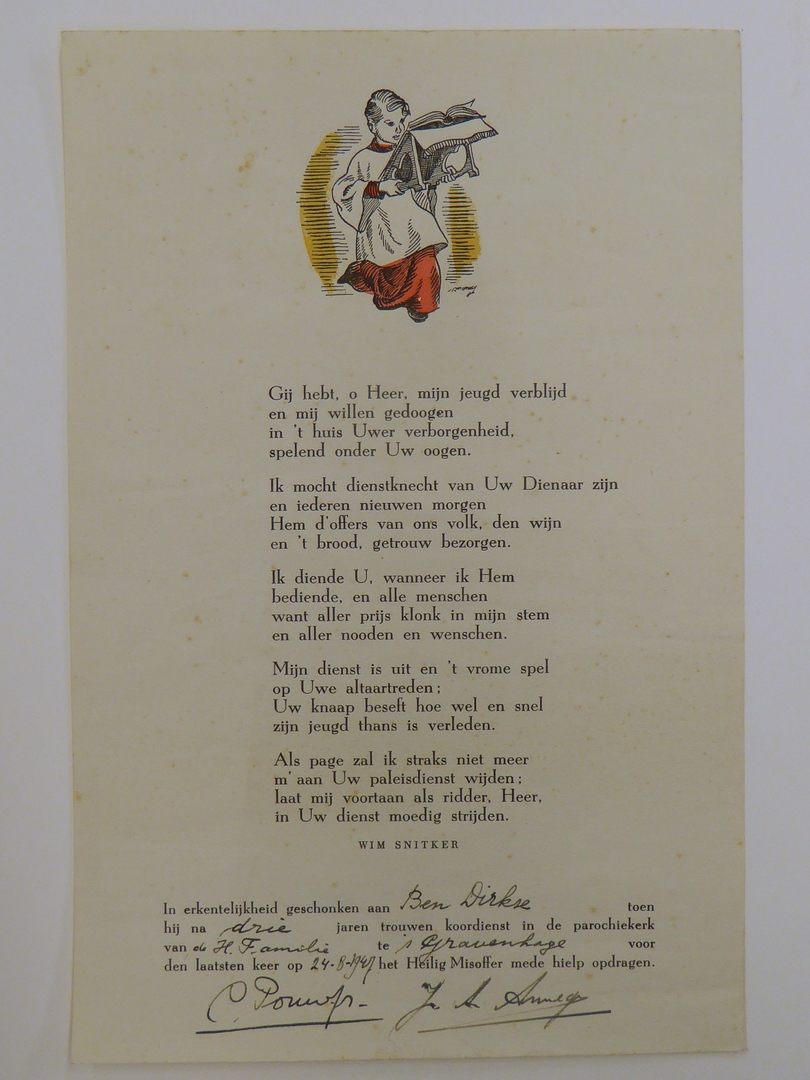 Druksel met gedicht Wim Snitker vanwege drie jaar koordienst Bernard Dirkse