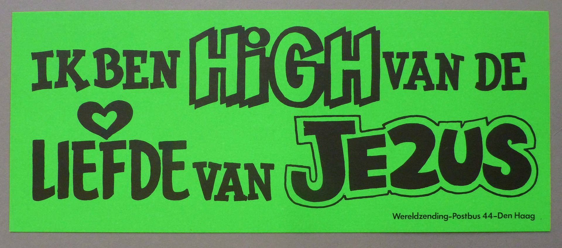 Groene sticker met "Ik ben high van de liefde van Jezus"