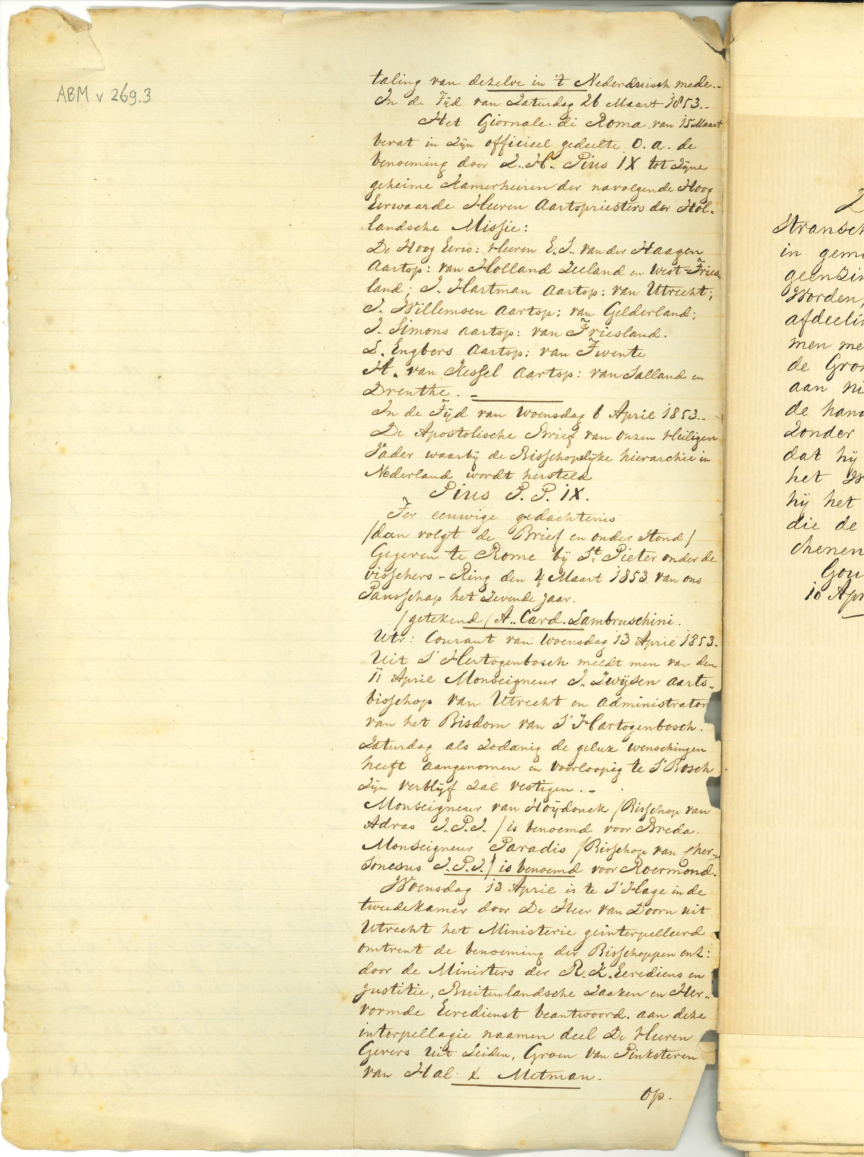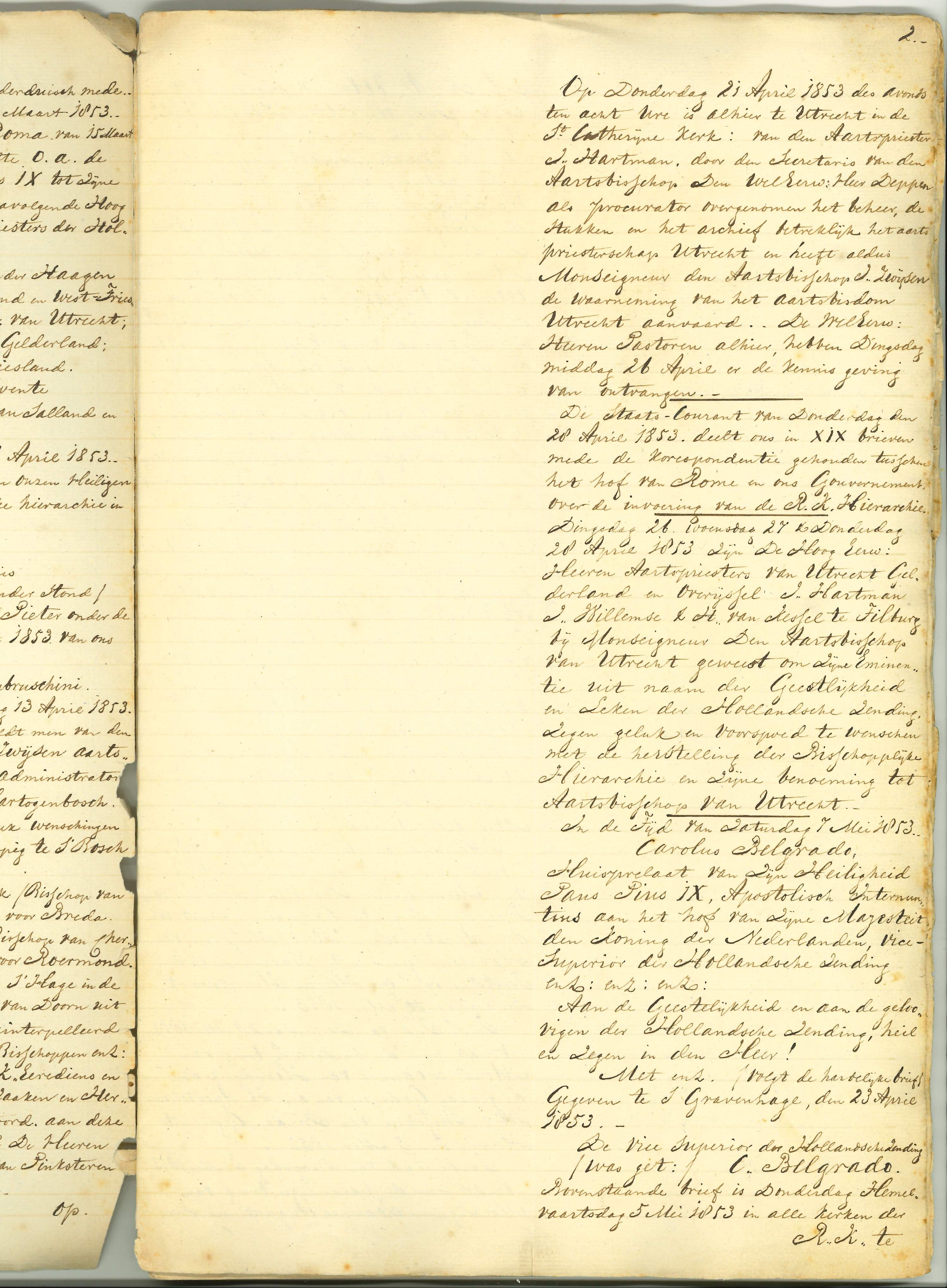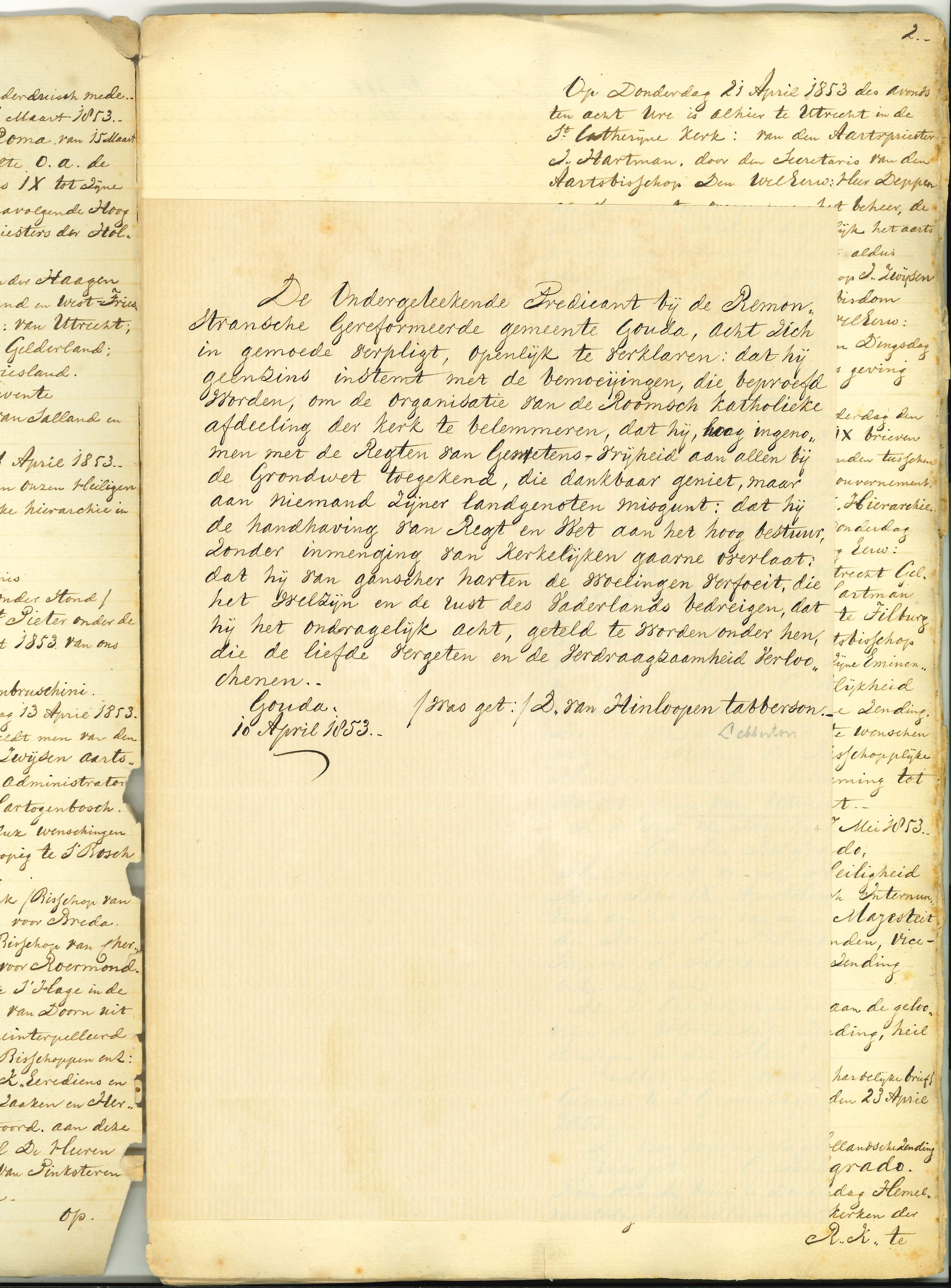 Beschrijving van kerkelijke gebeurtenissen, in het bijzonder in Utrecht, periode 1853-1873, waaronder het herstel bisschoppelijke hiërarchie 1853