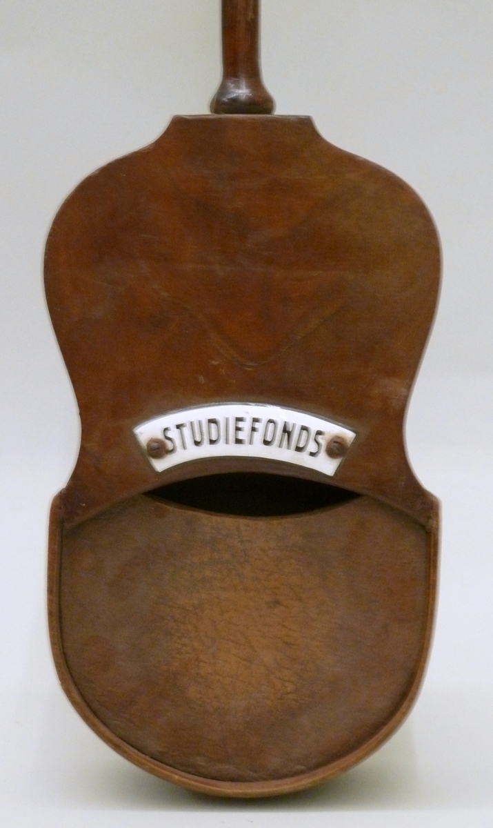 Collectebak met lange steel met opschrift "studiefonds"