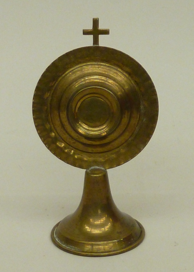 Speelgoedzonnemonstrans op ronde voet bekroond met kruisje