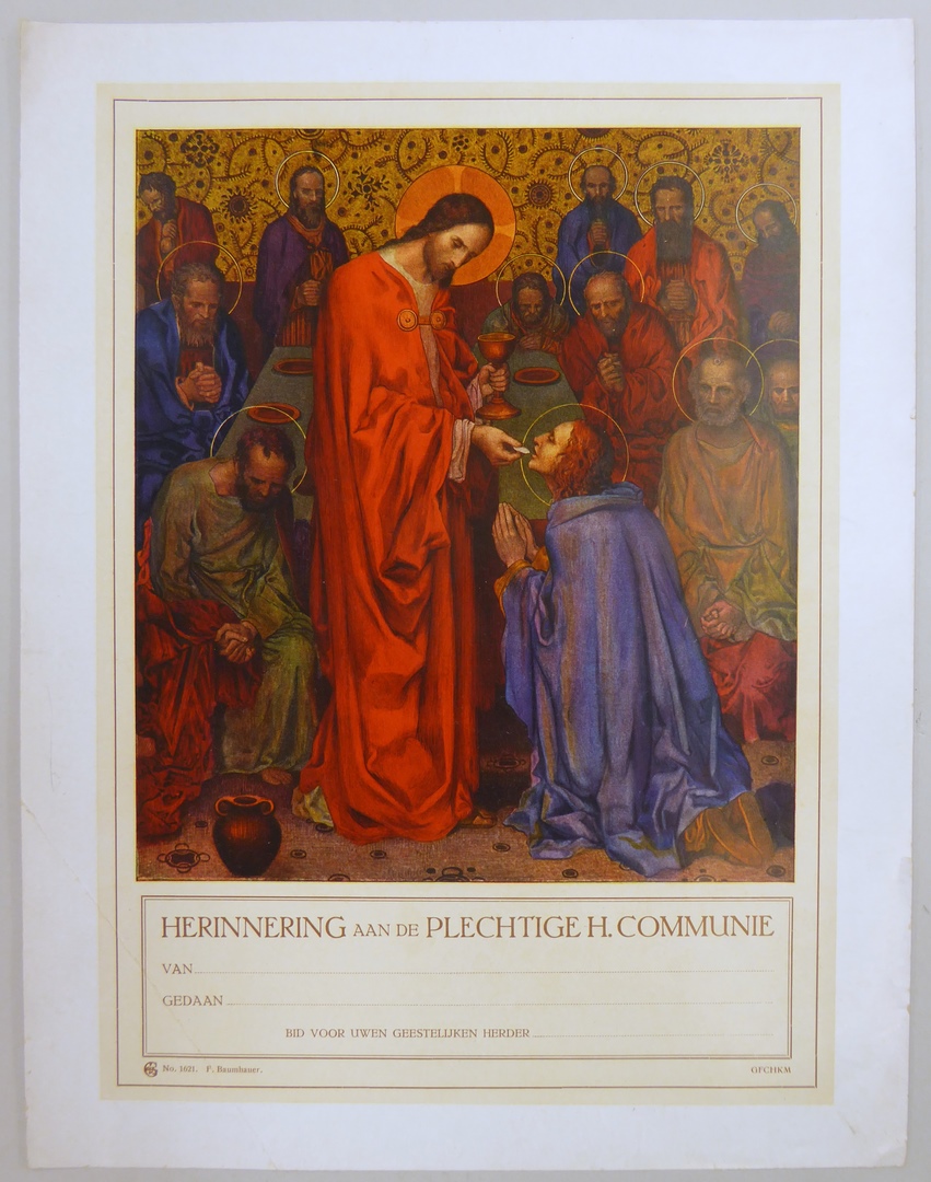 Communieprent met Christus die communie uitreikt aan apostelen