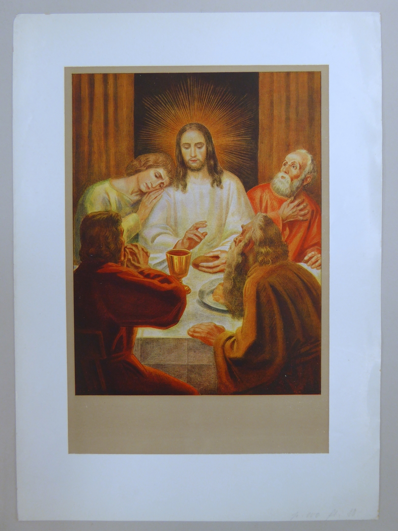 Communieprent met het laatste avondmaal, Christus zegent het brood