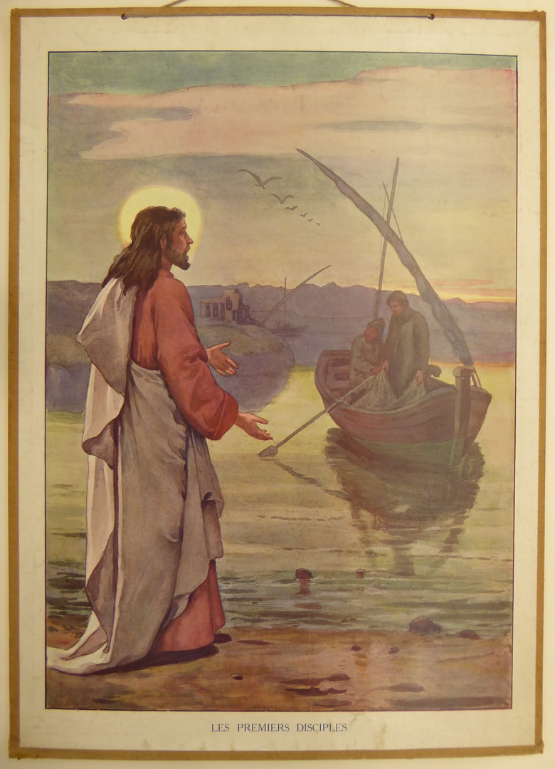 De eerste apostelen (Frans), met Jezus aan het water met vissersboot