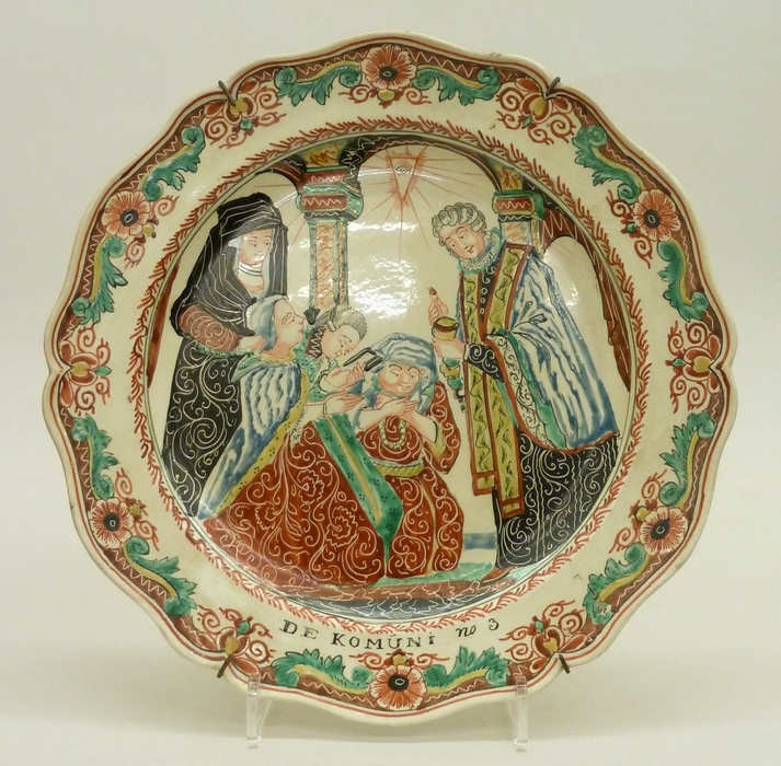 Bord met "De komuni no 3" uit een serie met voorstellingen der zeven sacramenten: de communie