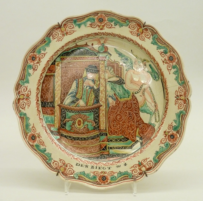 Bord met "Den biegt no 4" uit een serie met voorstellingen der zeven sacramenten: de biecht