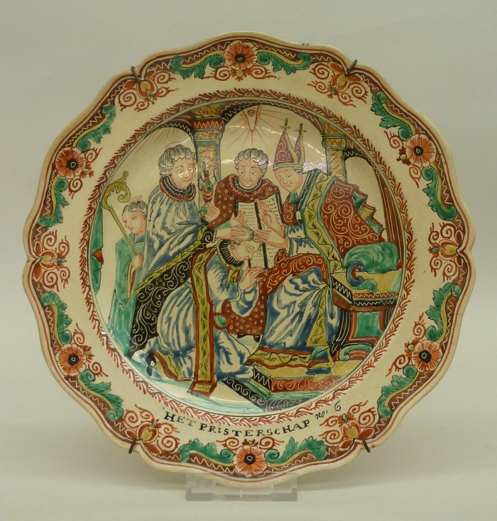 Bord met "Het pristerschap no 6" uit een serie met voorstellingen der zeven sacramenten: het priesterschap