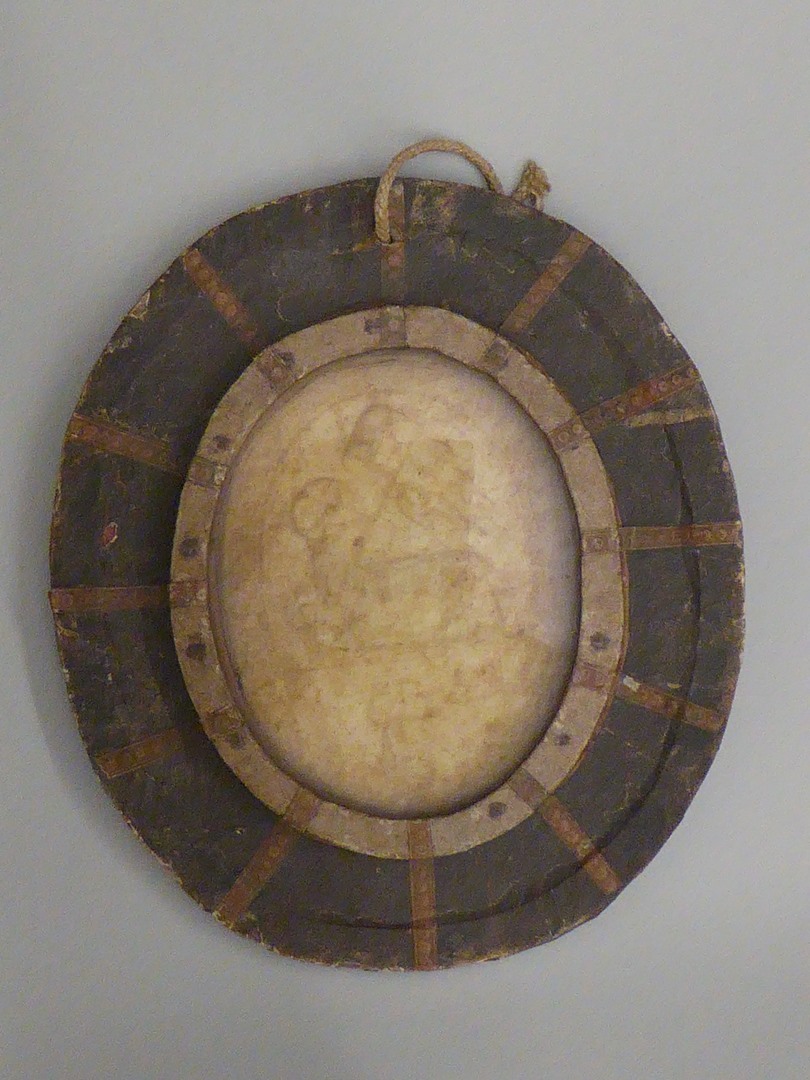 Agnus Dei in houten omlijsting met wapen Pius IX en aan de keerzijde de H. Bruno