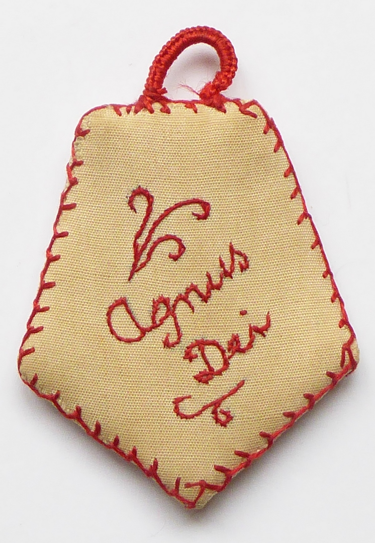 Agnus Dei, rood geborduurd