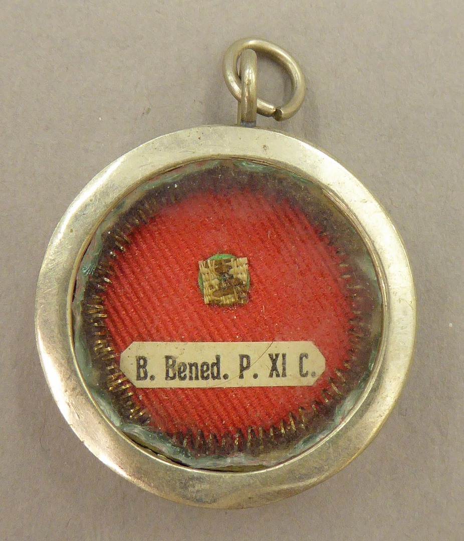 Ronde houder met reliek van dominicaner heilige Benedictus(?)