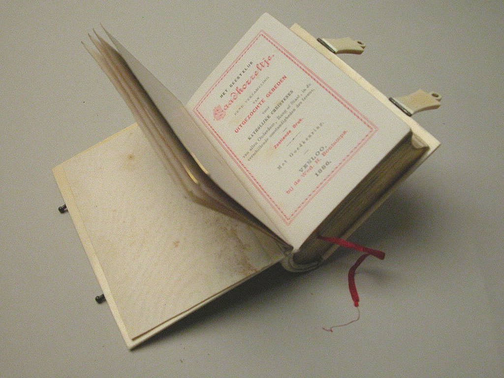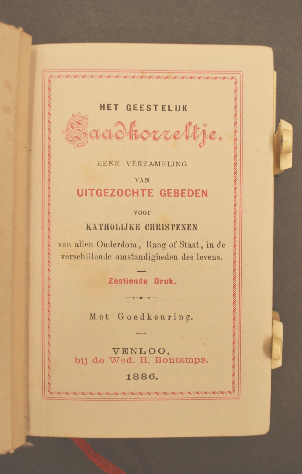 Gebedenboek "Het Geestelijk Zaadkorreltje" in ivoren band met daarop naam bezitster "Josephine"