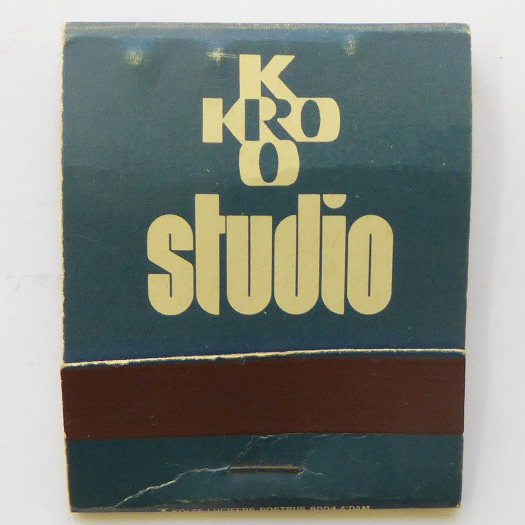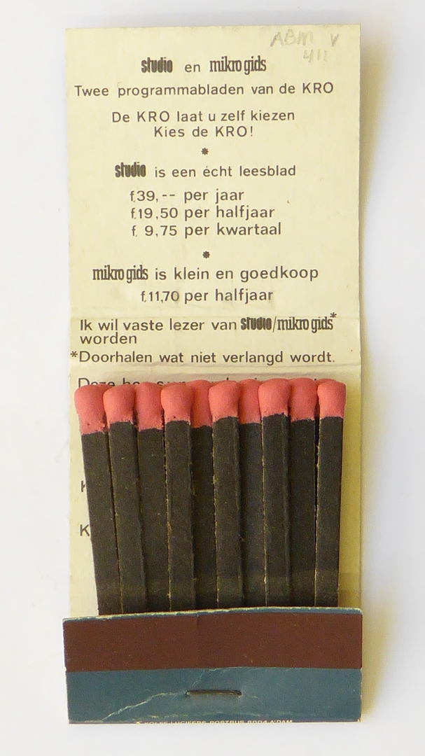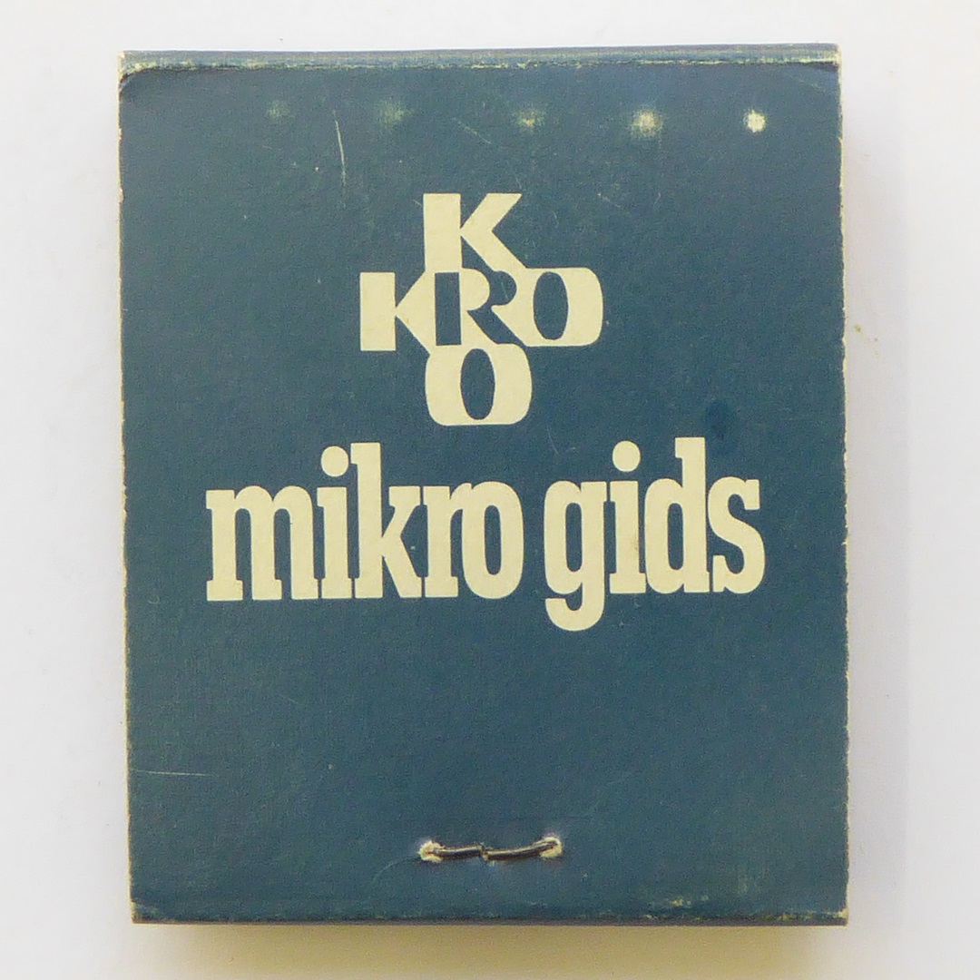 Lucifers in mapje met het embleem van de KRO, met "Studio" en "Mikro gids"