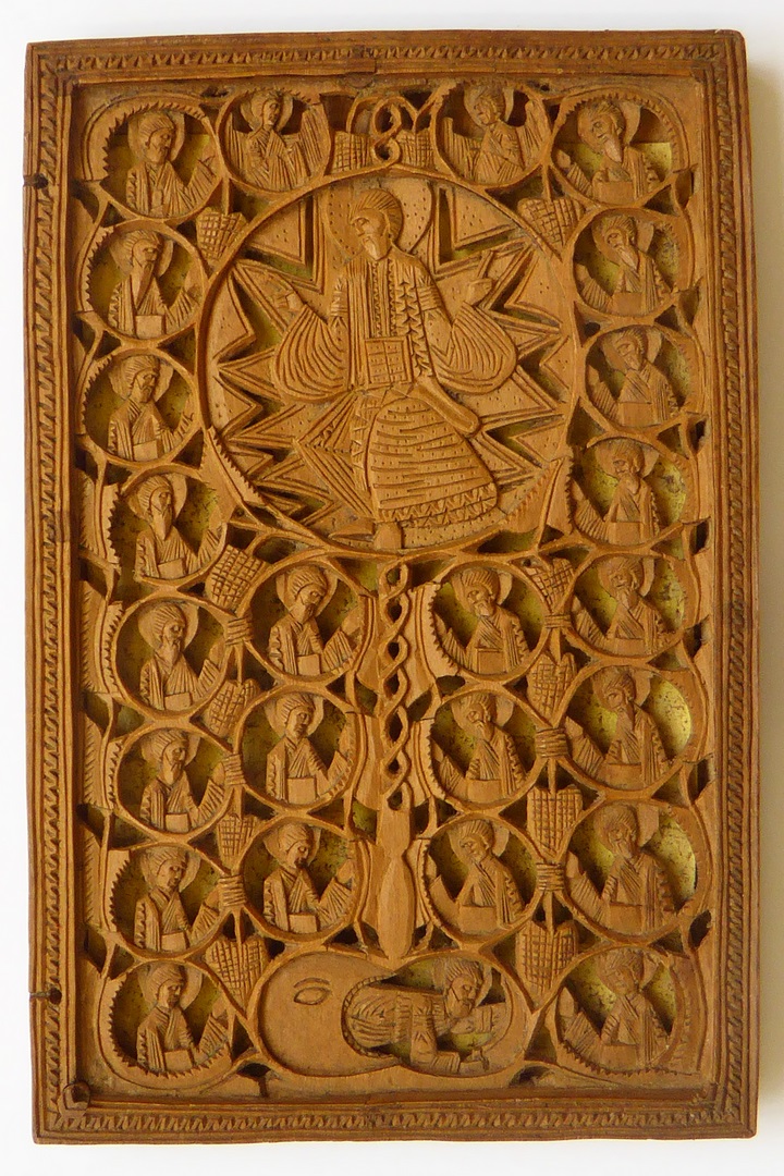 Plaquette met snijwerk waarop Christus(?), Jonas in de walvis en profeten