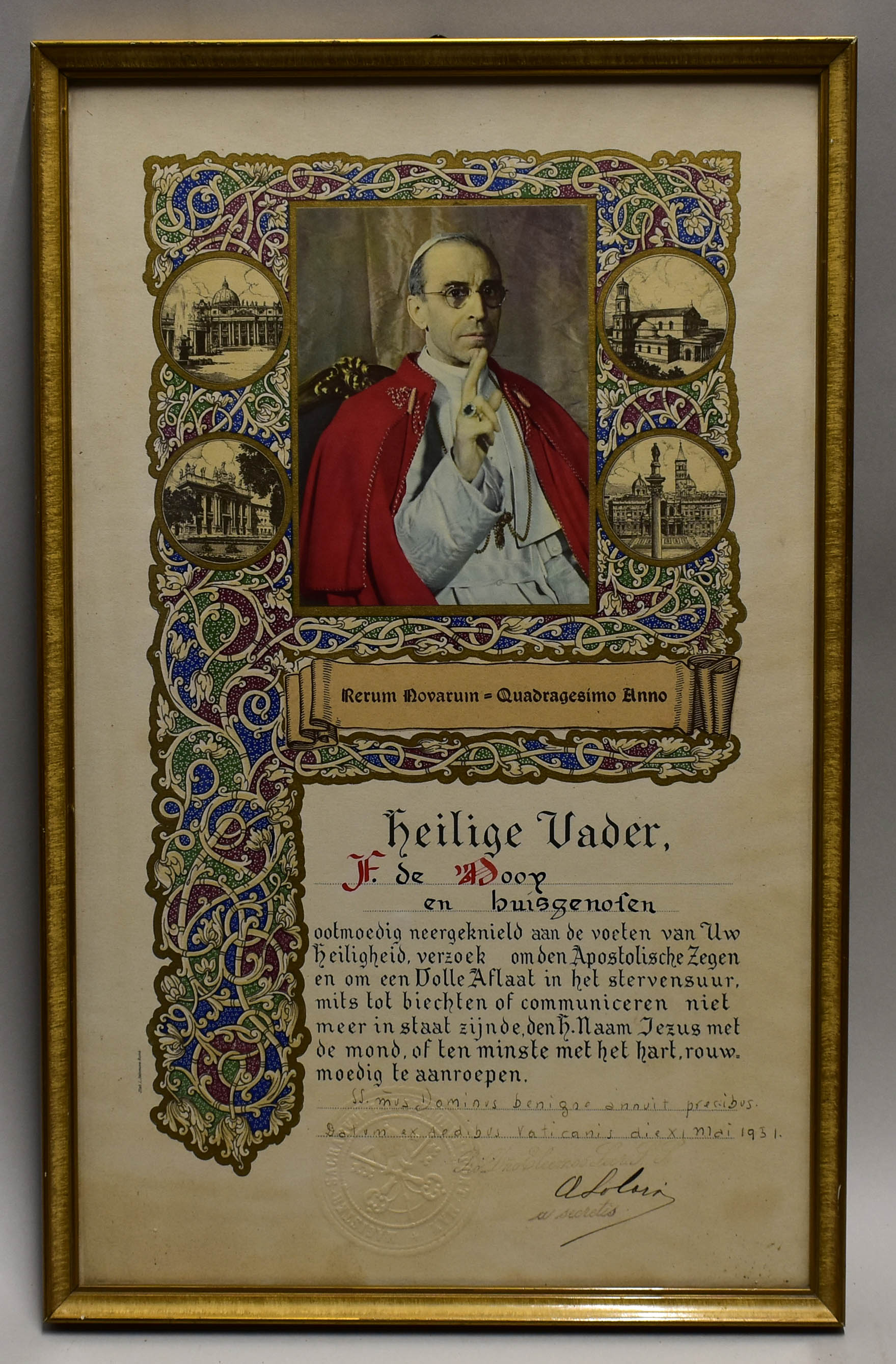Oorkonde met apostolische zegen Pius XII en voorstellingen kerken Rome