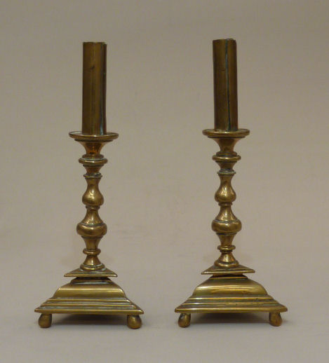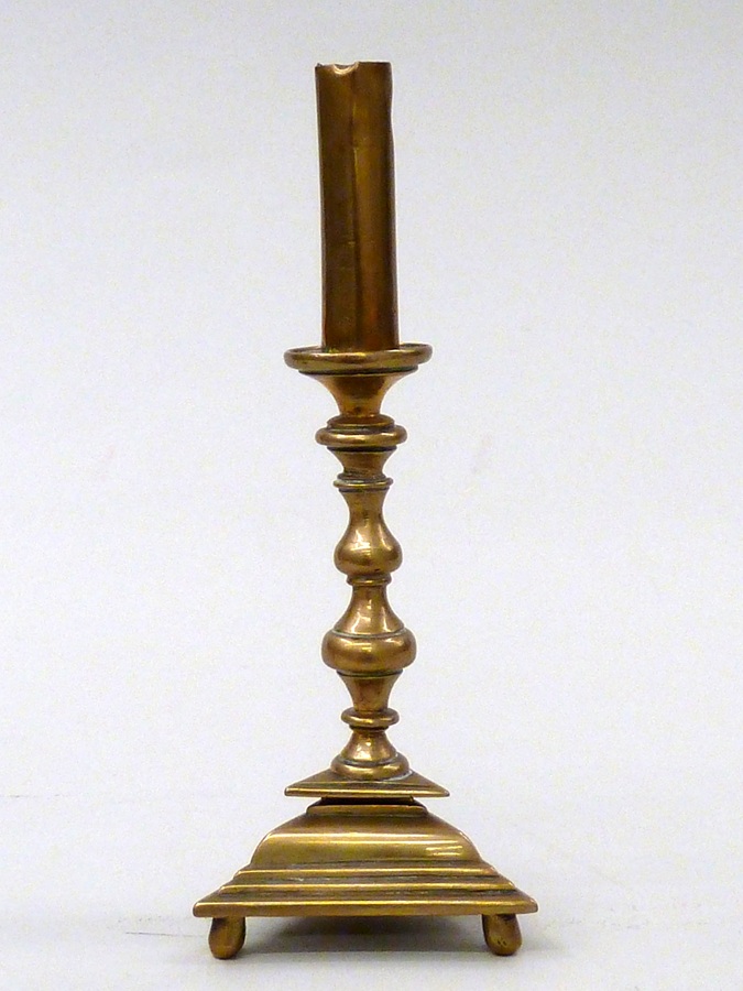 Koperen kandelaar met driehoekige voet